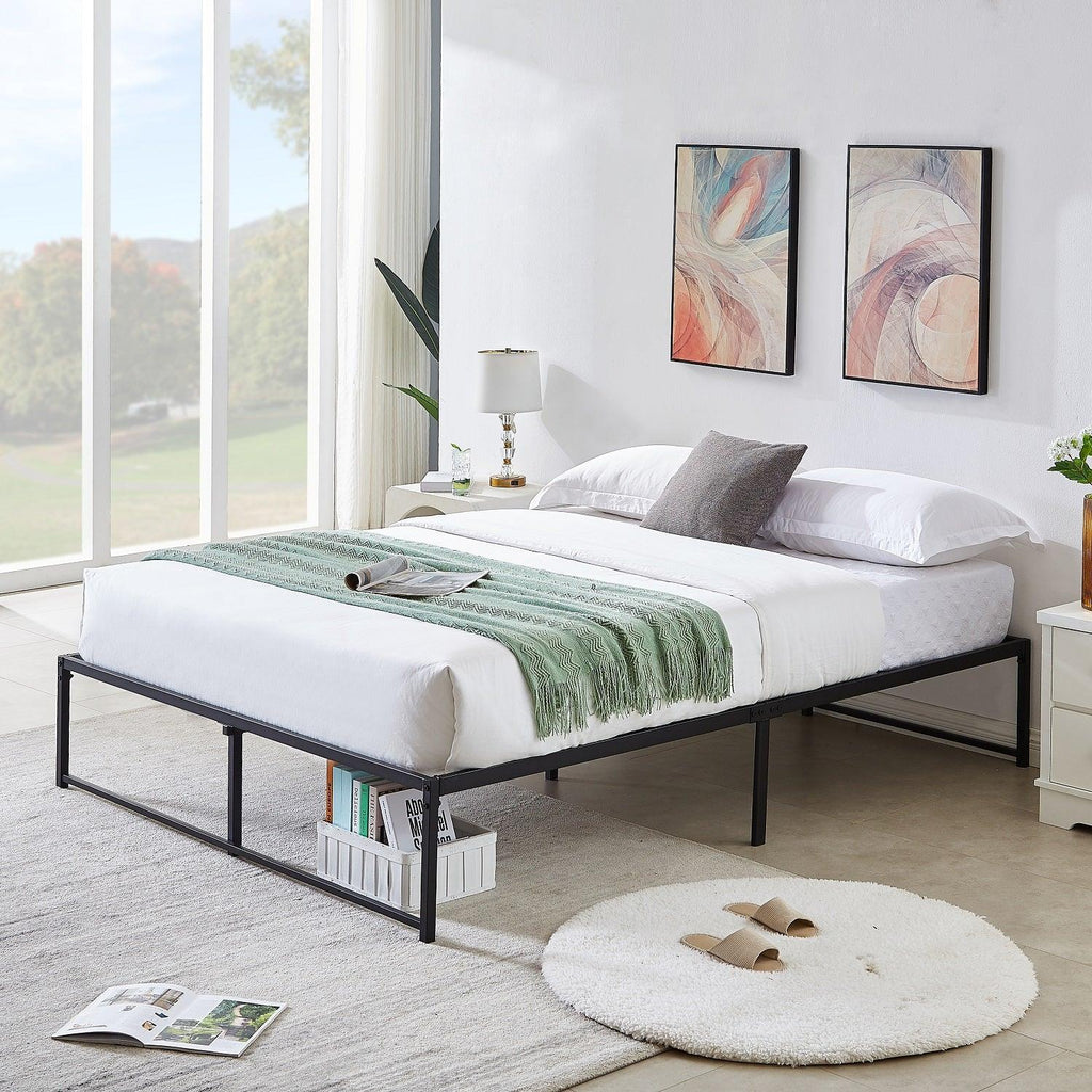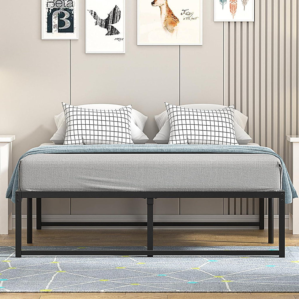VECELO 14" Black Platform Bed Frame/Mattress Foundation/No Box Spring Needed/Steel Slat Support