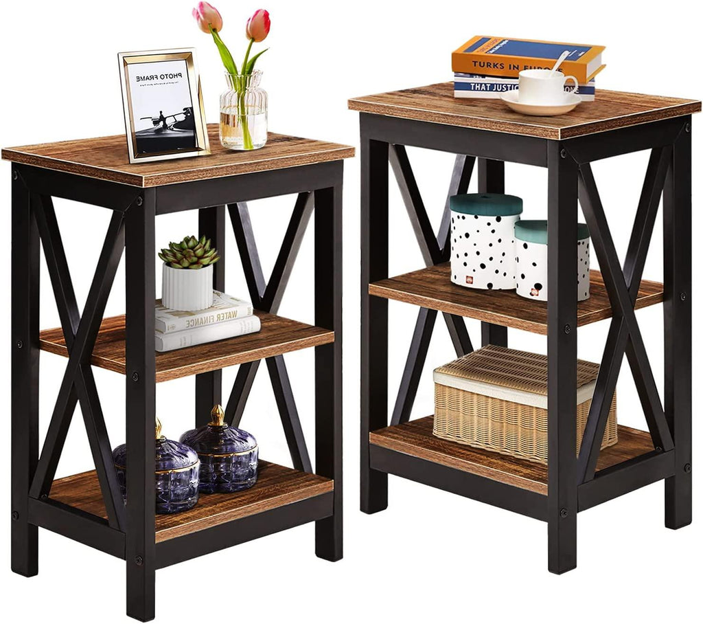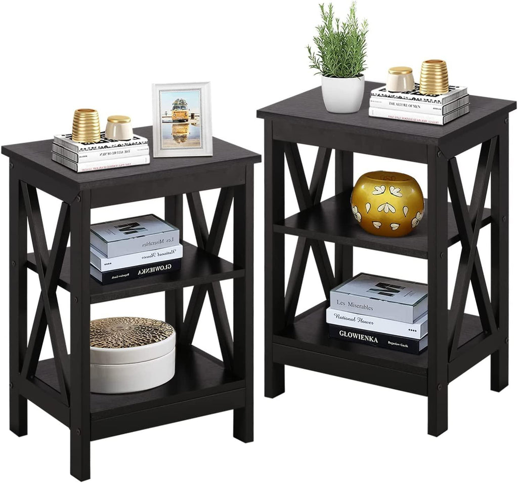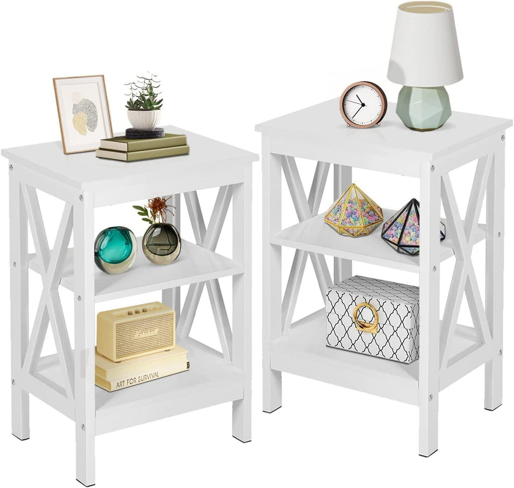VECELO Modern Nightstand Side End Table with 3-Tiers Open Storage Shelf, 1 pack/2 packs