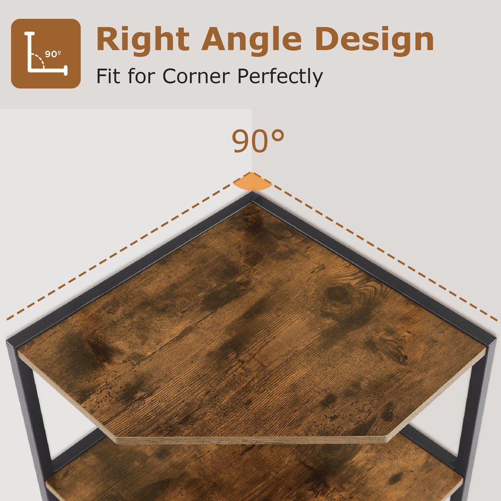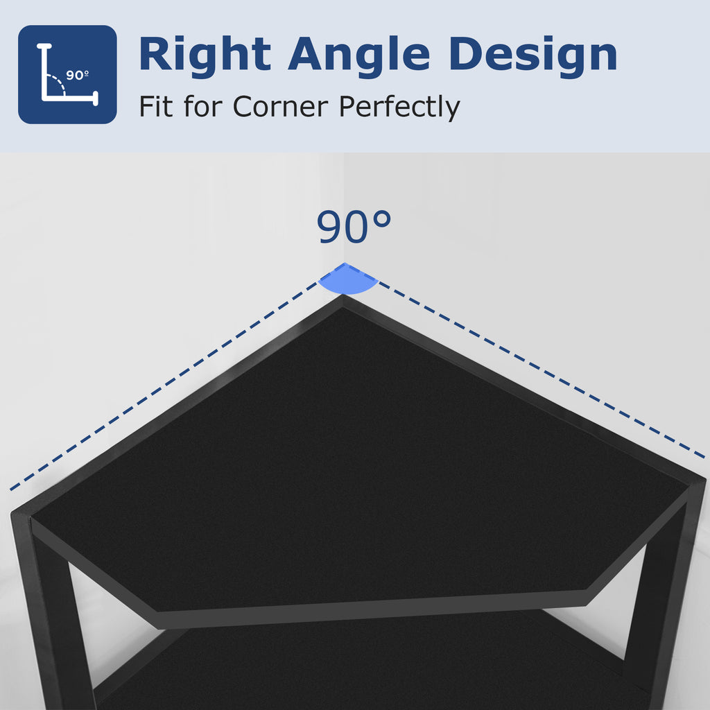 • [STABLE] This corner shelf is built with matte black iron frames and wood grain E-1 grade MDF board, sturdy three-legged metal structure make it long term use.