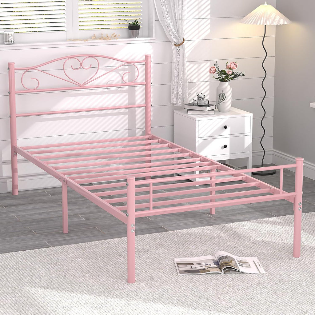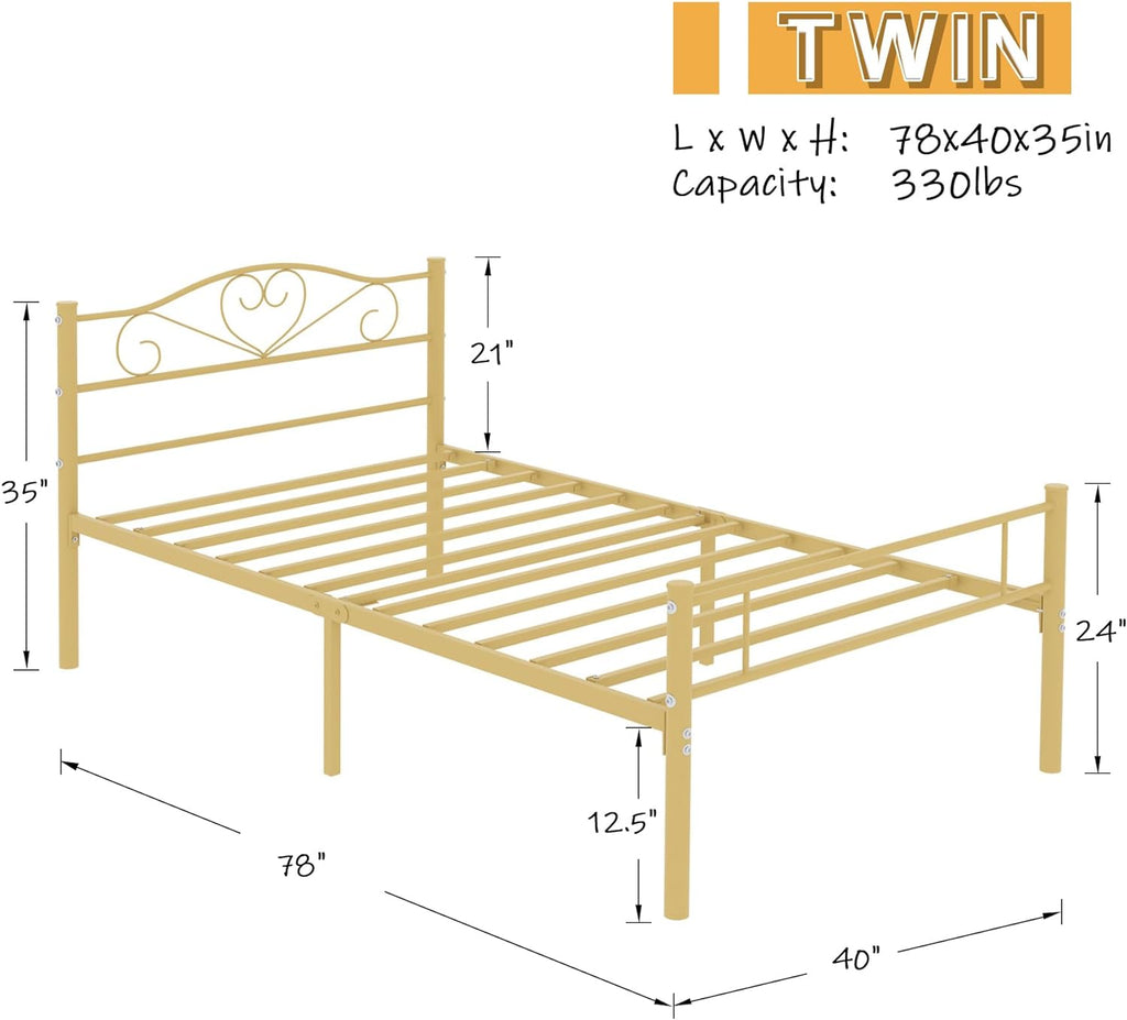 • STYLISH DESIGN: Twin bed frame comes with an elegant headborad&footbard is designed for your bedroom/guest room.No matter what style your bedroom or guest room is, vintage, industrial or modern, this bed frame fits perfectly. (No mattress comes).