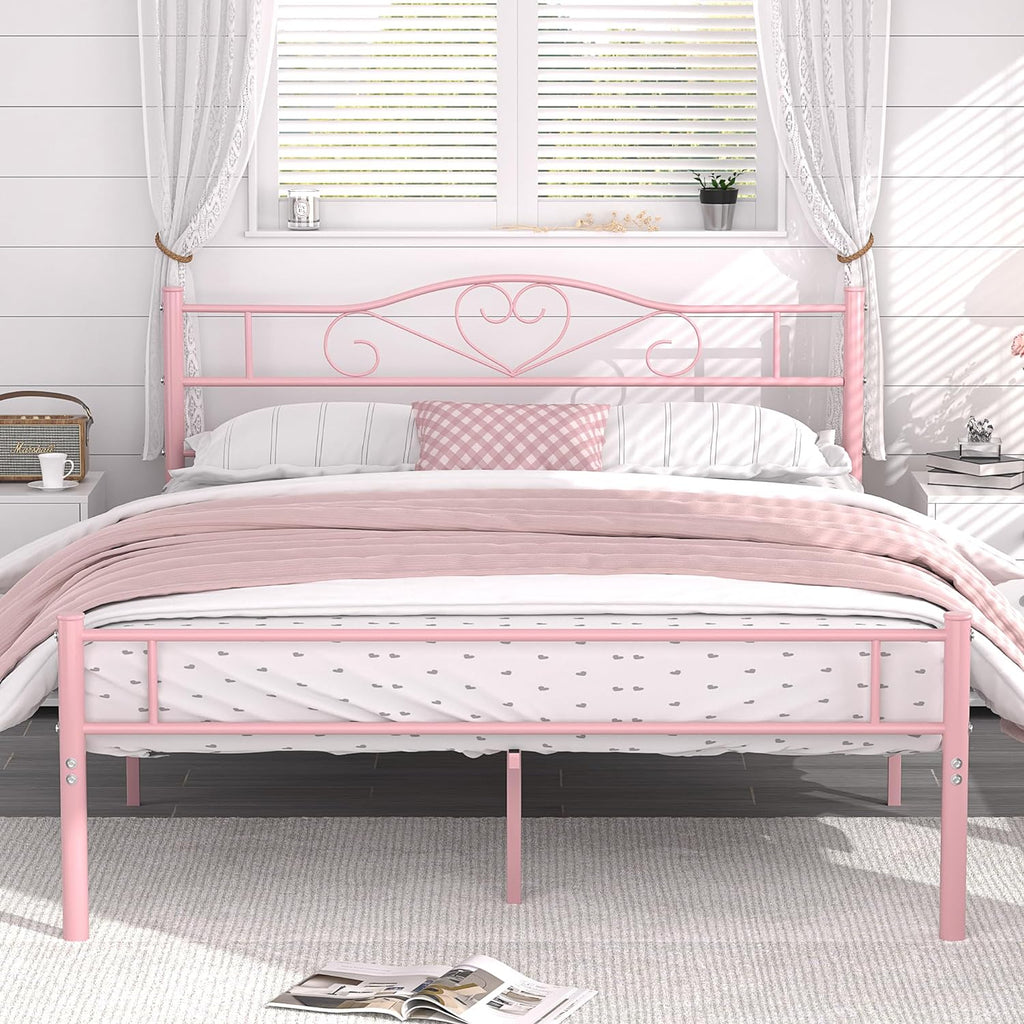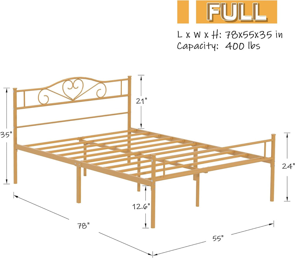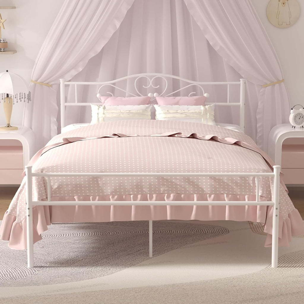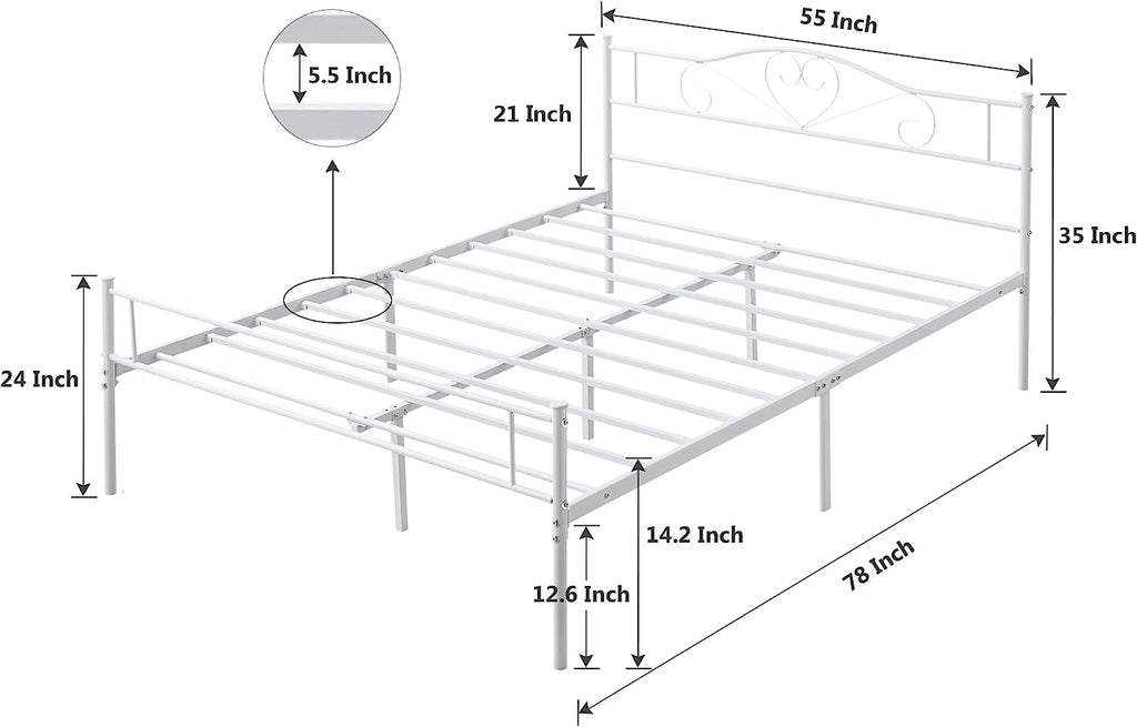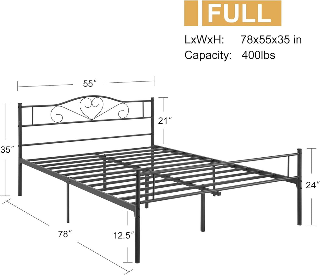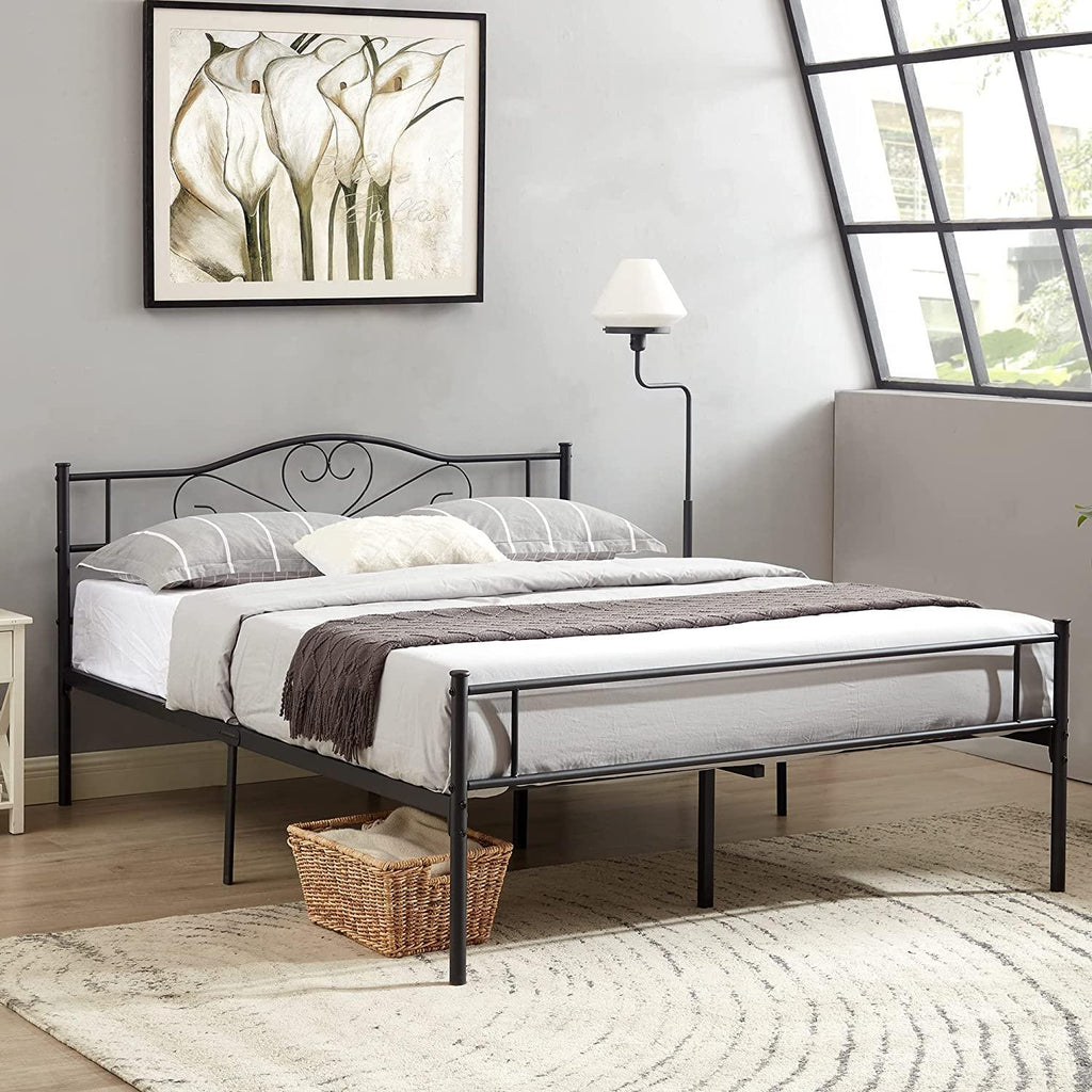 VECELO Metal Platform Bed Frame Mattress Foundation Decorative Headboard & Footboard