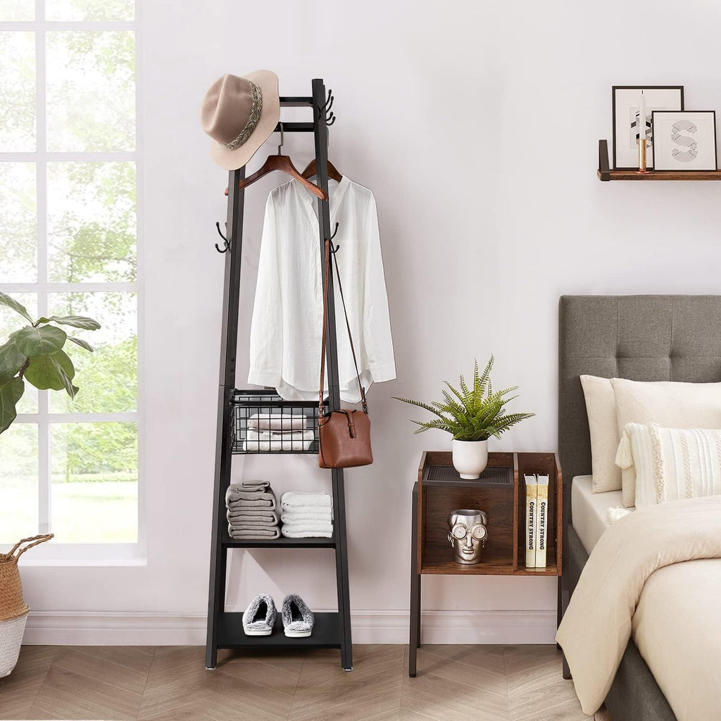 • 【Durable & Stable】This coat rack is made of high-quality particleboard and metal frame, which is strong and durable.The unique square base plate with trapezoidal architecture increases the space for accommodation.