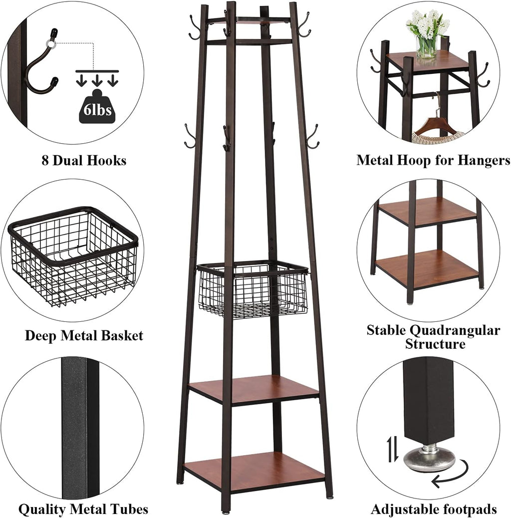 VECELO Coat Rack Freestanding Hall Tree