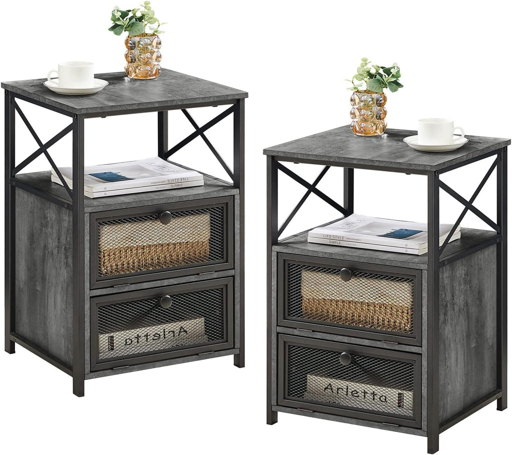 • Sturdy metal frame, water-resistant and high-grade board provide excellent stability and durability, ensure the nightstand for long-term use. Exquisite workmanship and sturdy smooth surface. The industrial look of the black iron frame is complemented by the rustic top of the side tables, creating an exciting mix of styles.