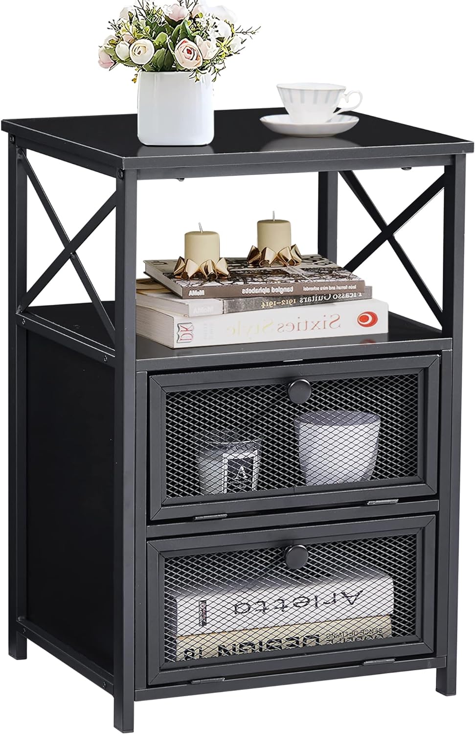 • The top open shelf gives sufficient storage room for storing and displaying, two extra flip drawers, you can store anything you want to keep on hand.