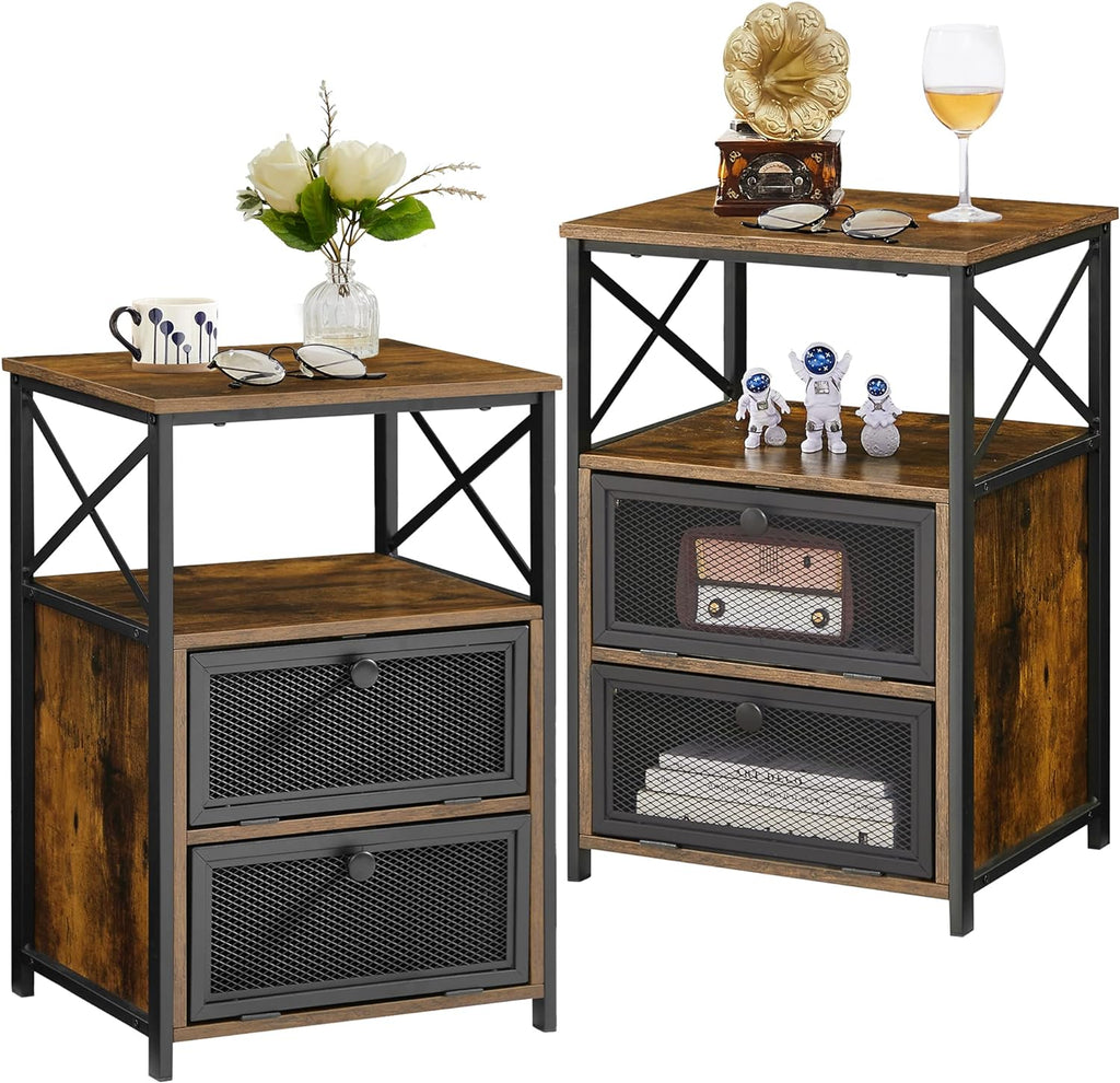 VECELO Nightstand, End Table with flip Drawer, 1 Pack/2 Packs