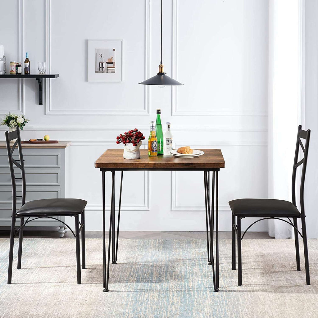 • 【Durable & Sturdy】Made of premium MDF board and sturdy steel supporting frames, this dining table set is very sturdy and durable for a long lifespan. Retro brown tabletop and black-finished legs add a stylish upscale feel to any living space.