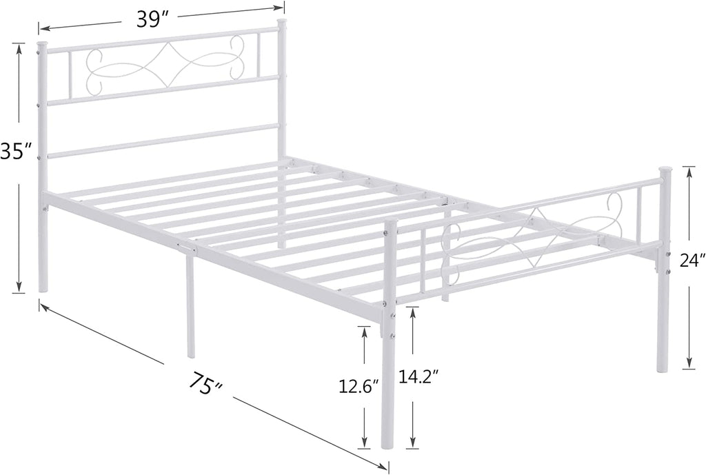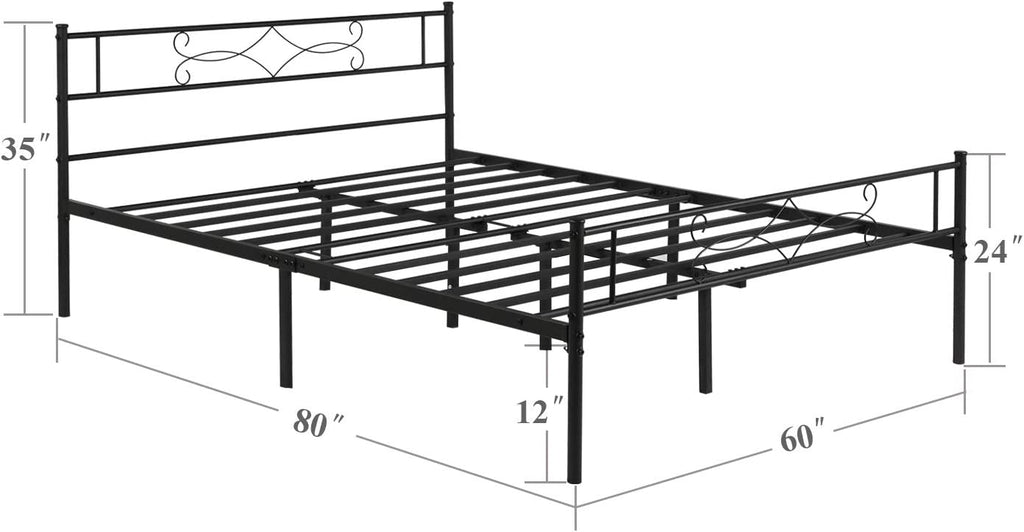 VECELO Metal Platform Bed Frame with Headboard & Footboard Premium Steel Slat Support Noise-Free