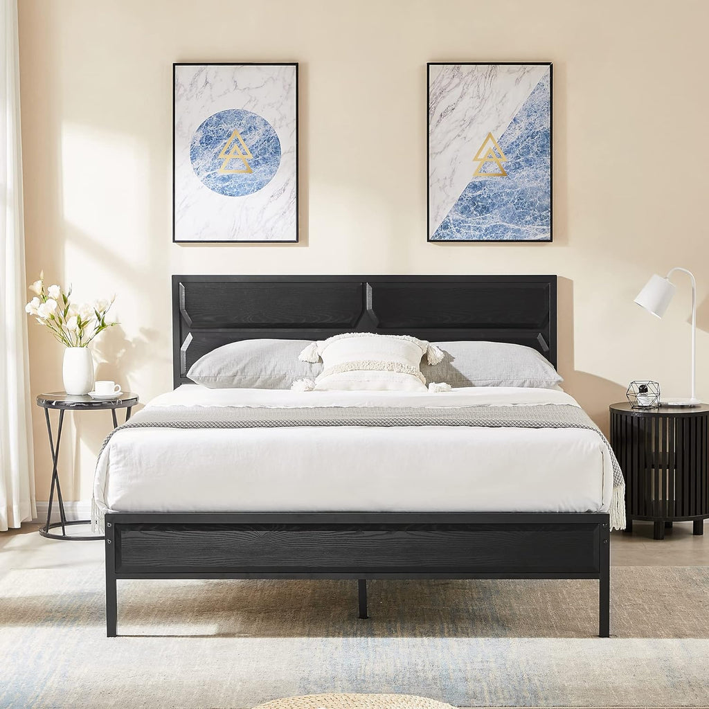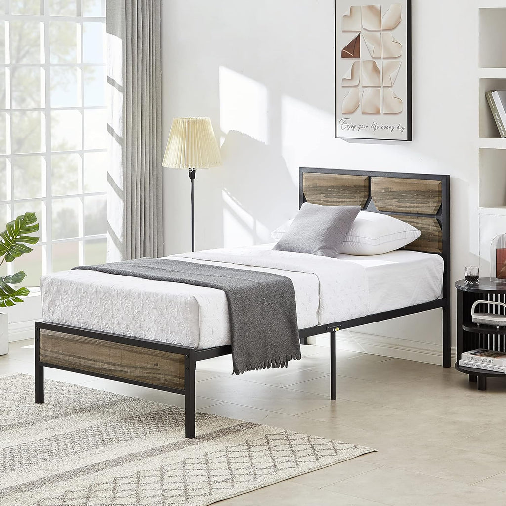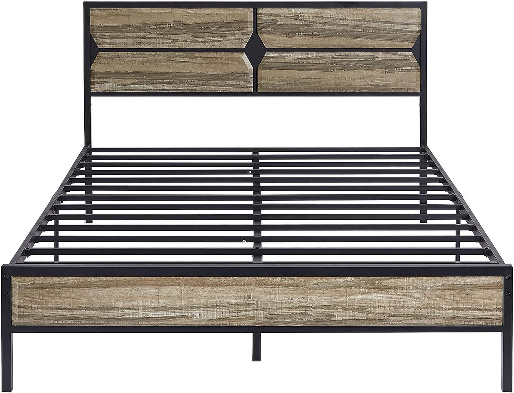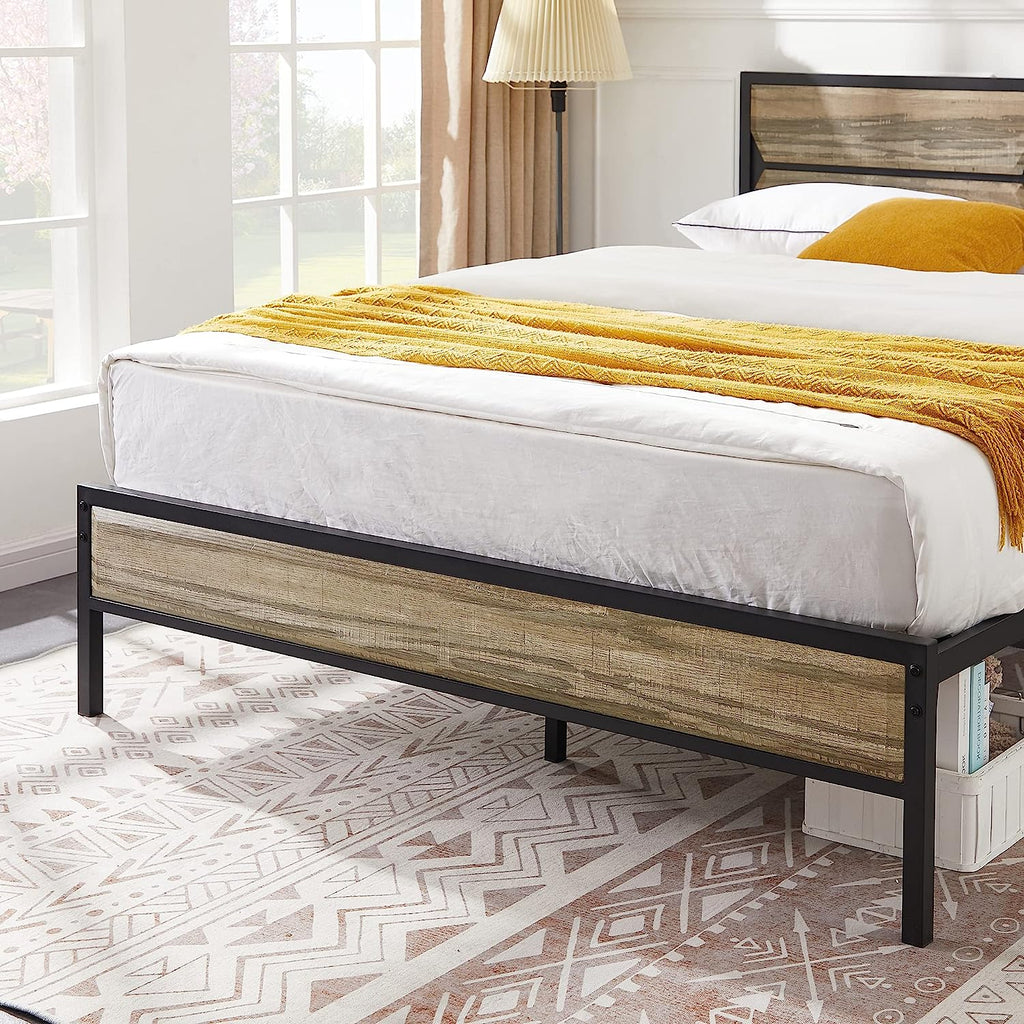 VECELO Metal Bed Frame Platform with Wooden Headboard&Footboard Mattress Foundation