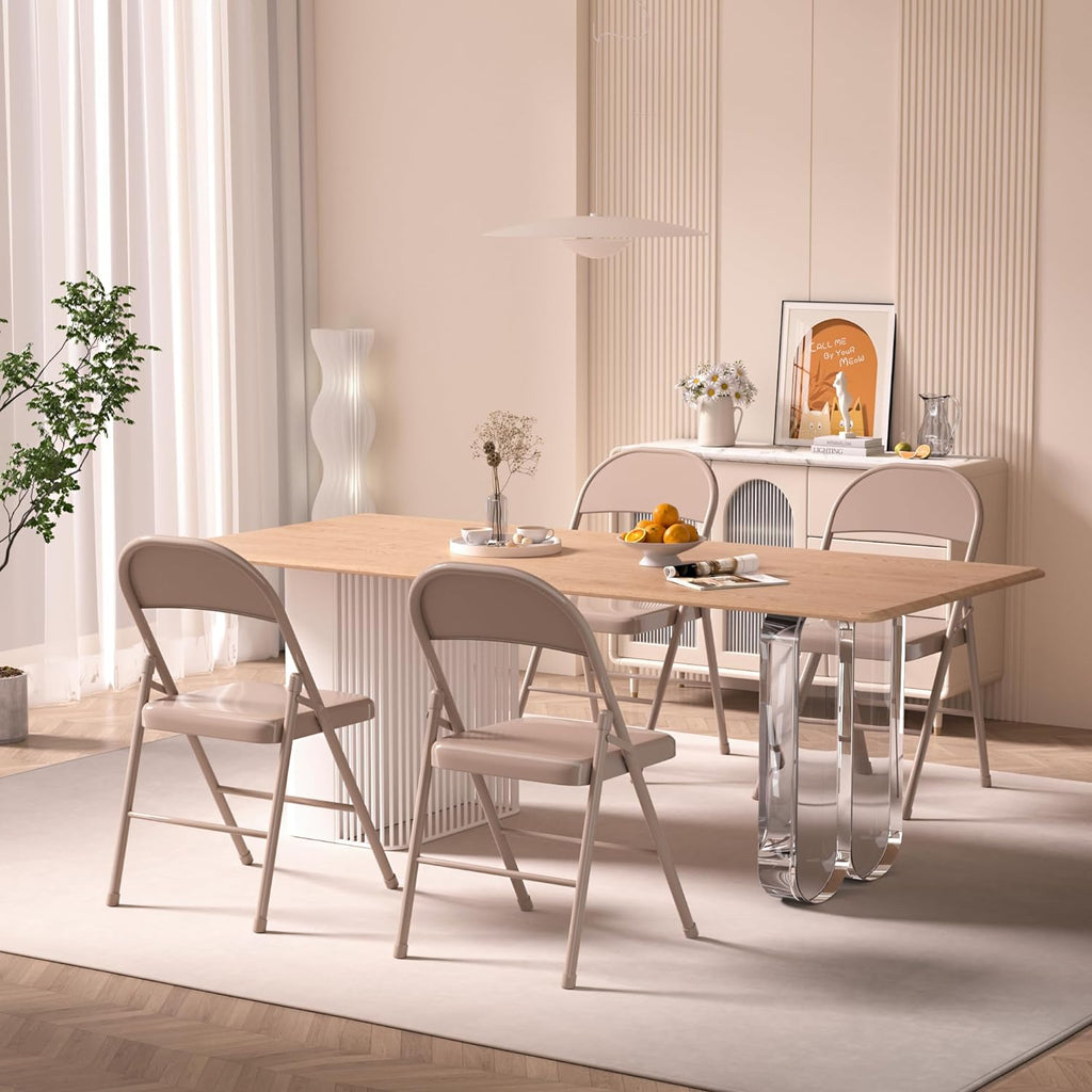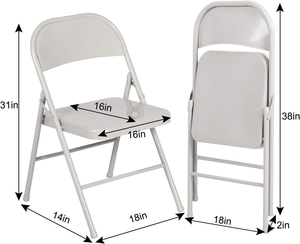 VECELO Metal Frame Steel Folding Mounted Chairs with Triple Braced & Double Hinged Back Set of 4