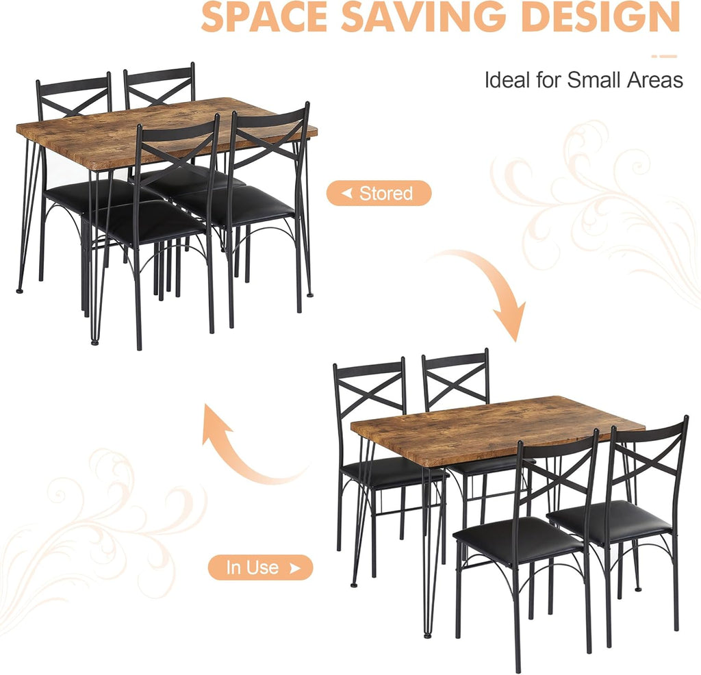 • 【Space Saving】Chairs can be neatly stored underneath for space-saving convenience,creating a tidy atmosphere. Perfect size is suitable for a dinette kitchen or any dining area, able to seat up to 4 people.