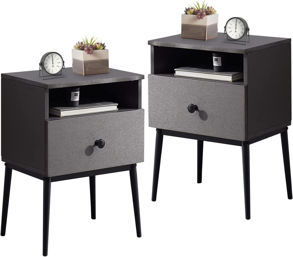 VECELO Modern Nightstand Square End Side Table with Drawer and Storage Space