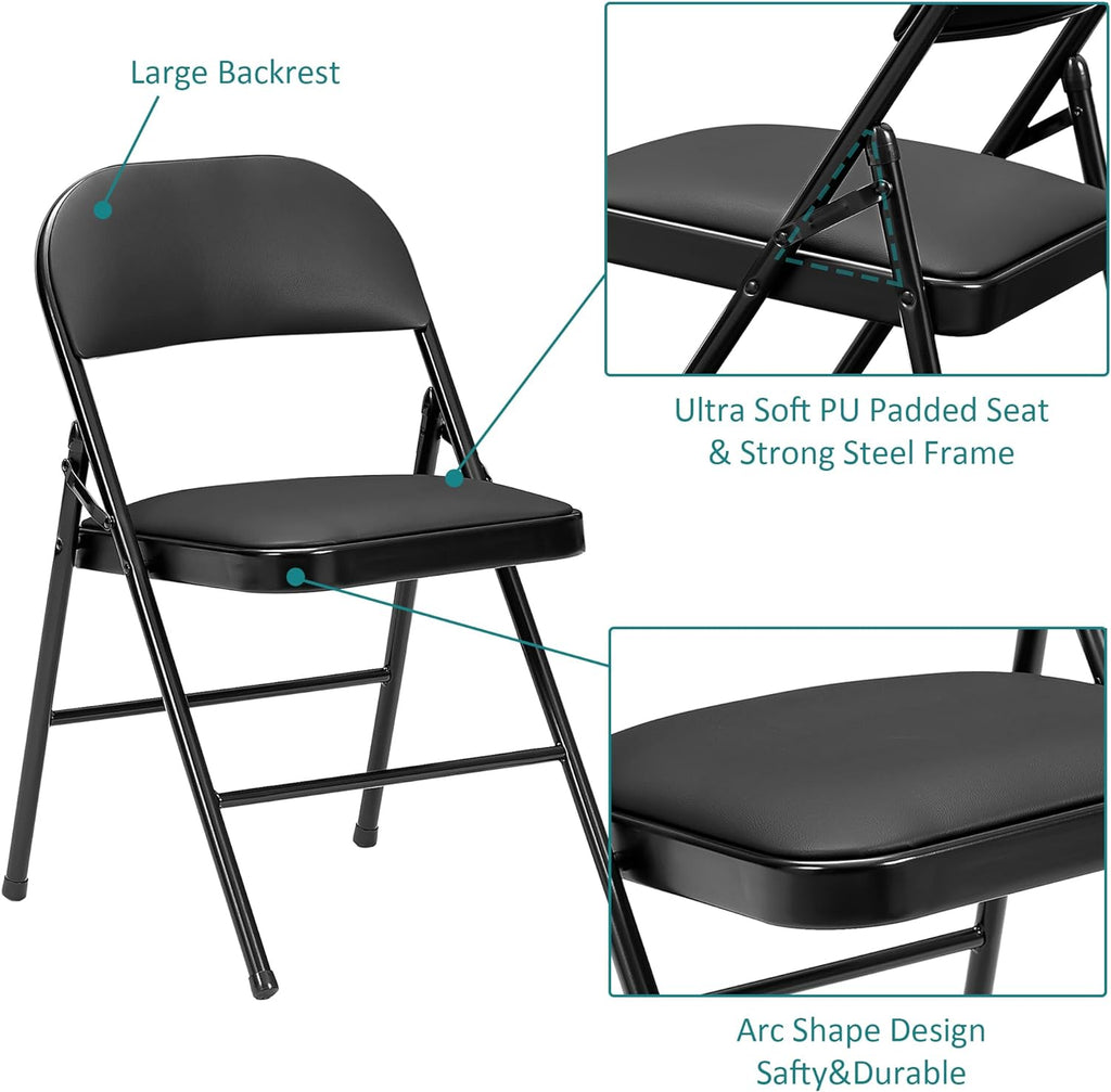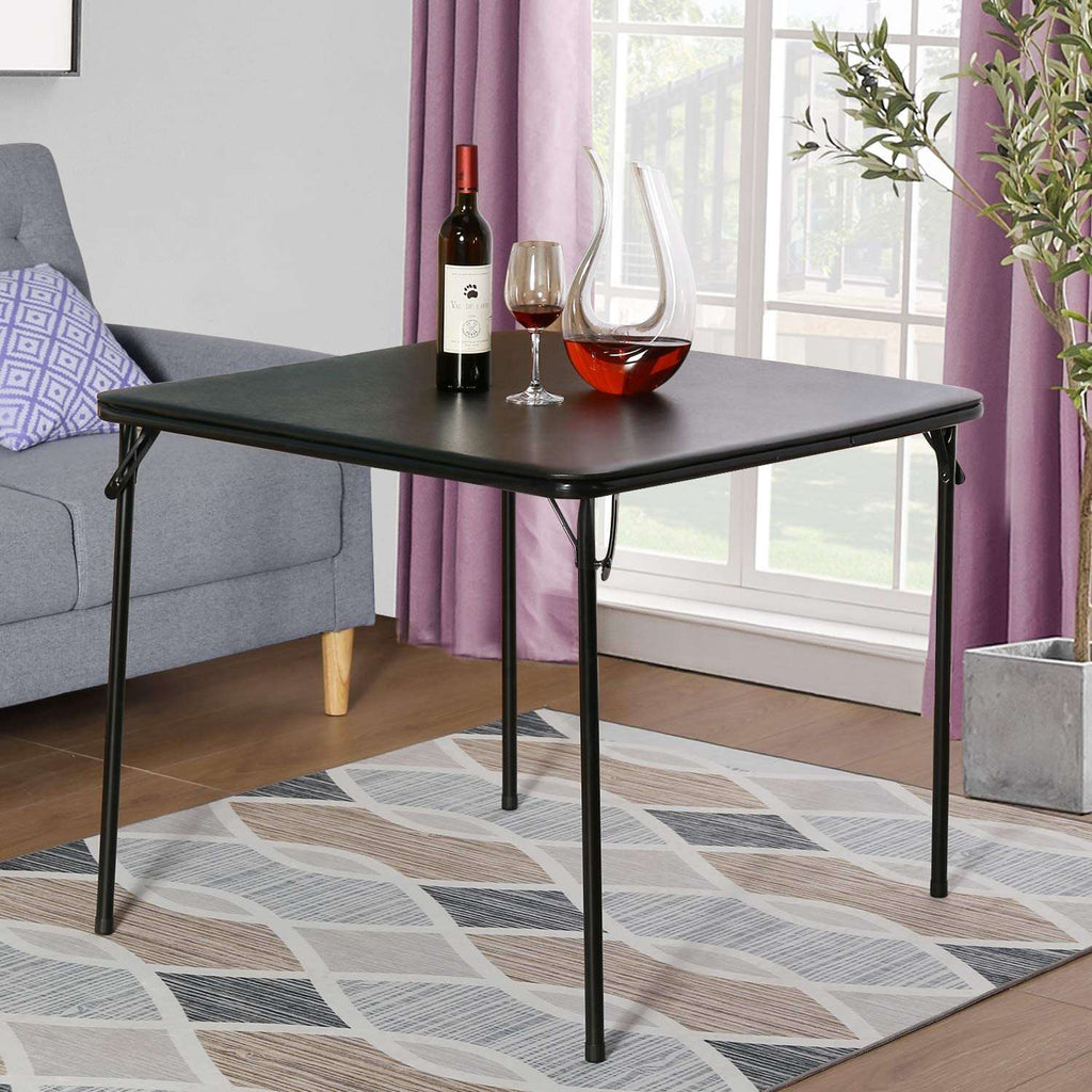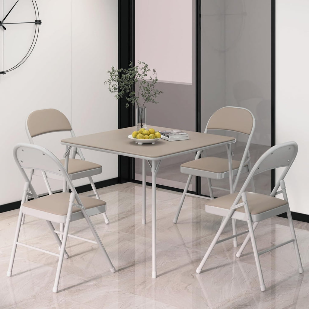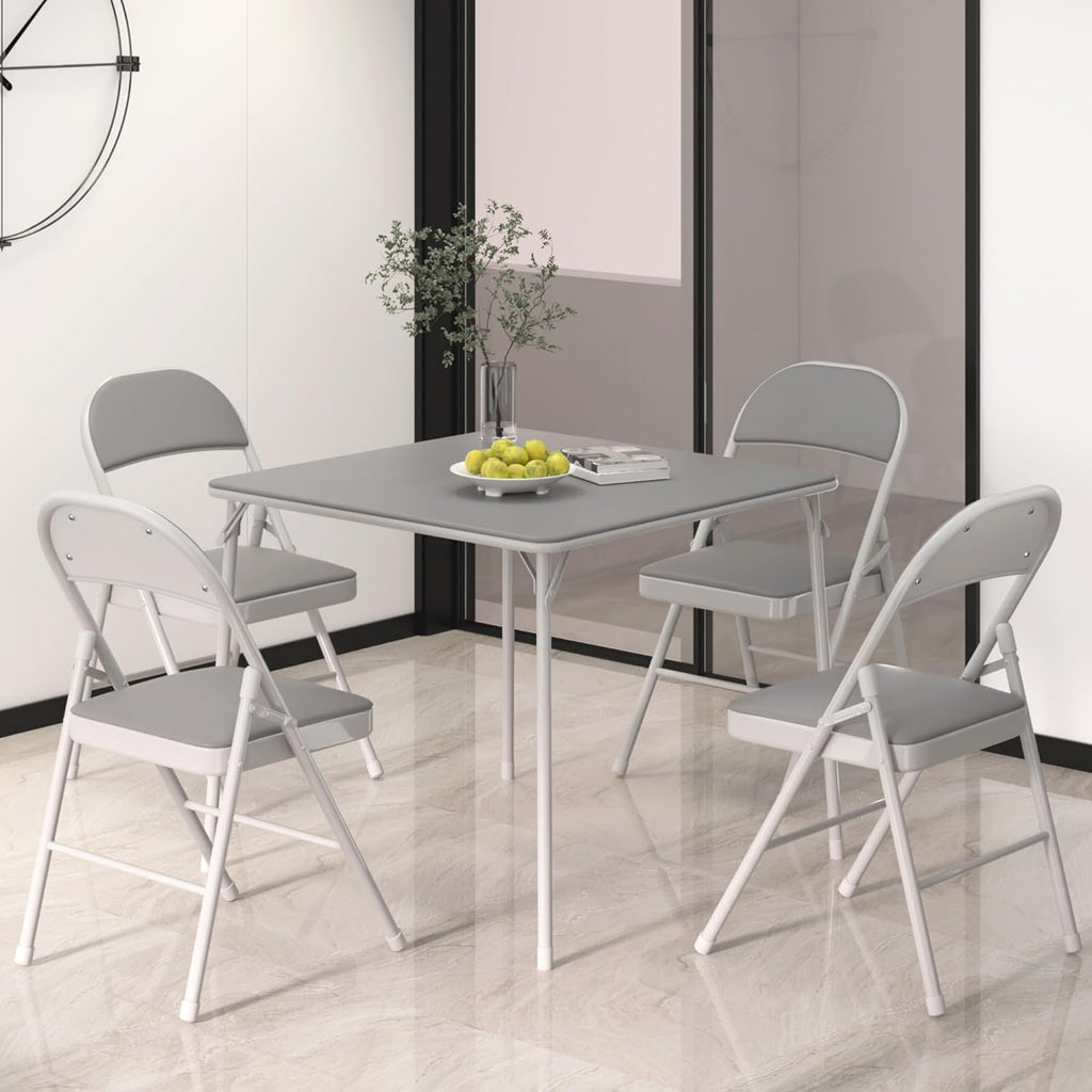 VECELO Portable Folding Card Table Square and Chair Sets with Collapsible Legs & Vinyl Upholstery (5 PCS)