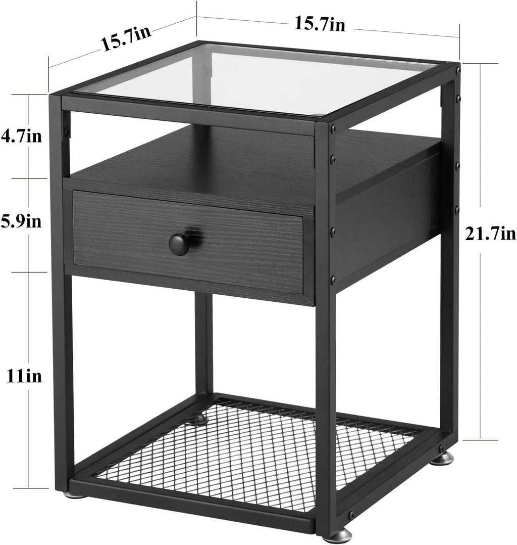 VECELO Nightstands,Glass Top End Tables with Drawer and Shelf