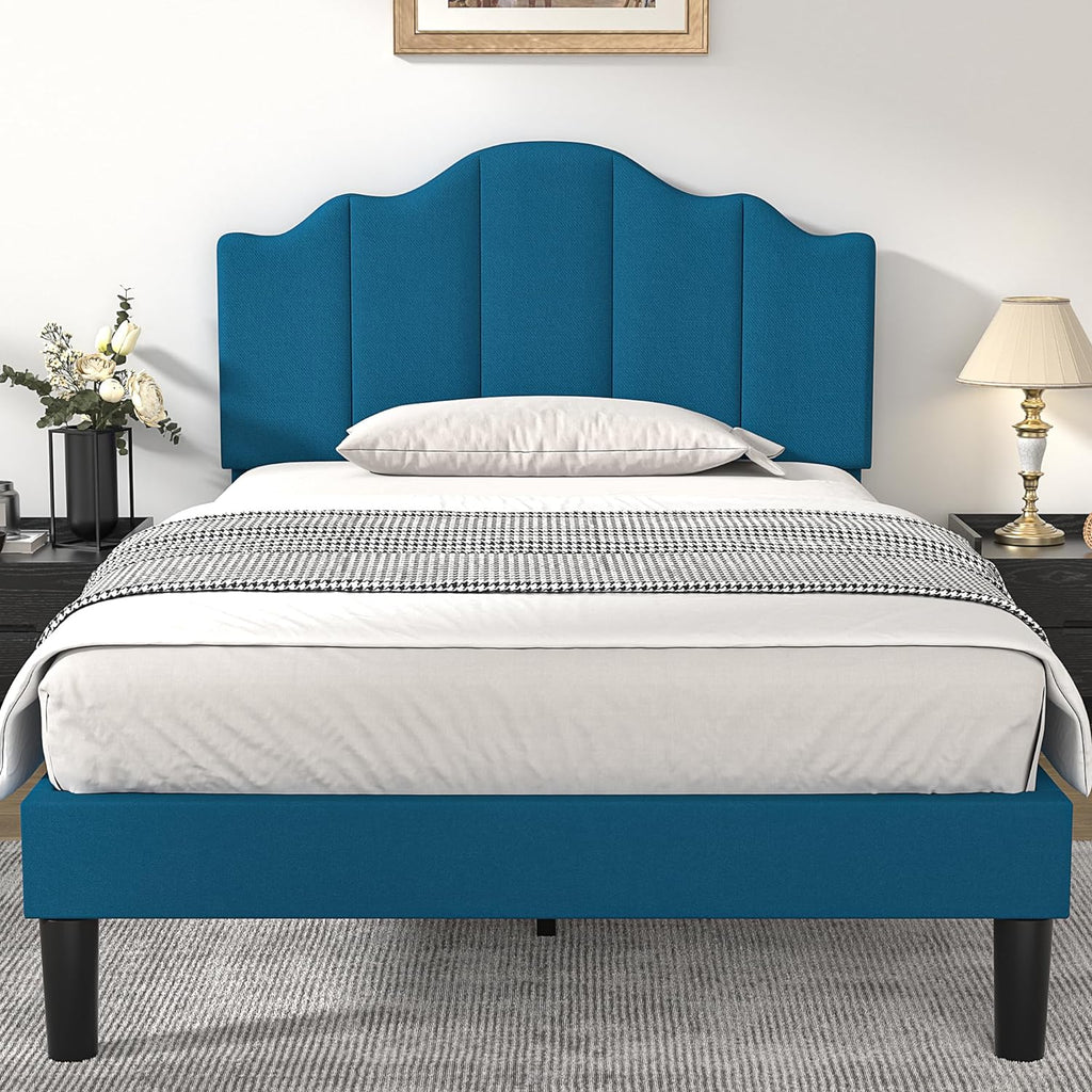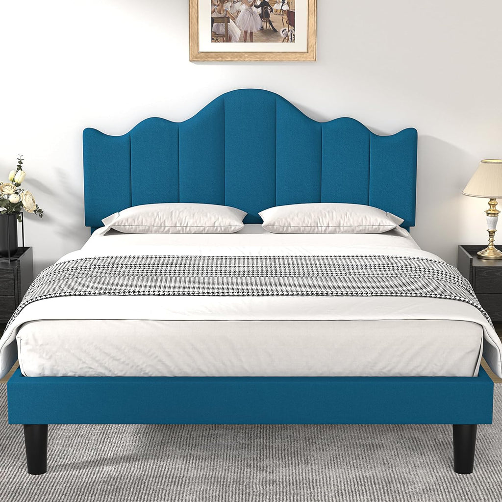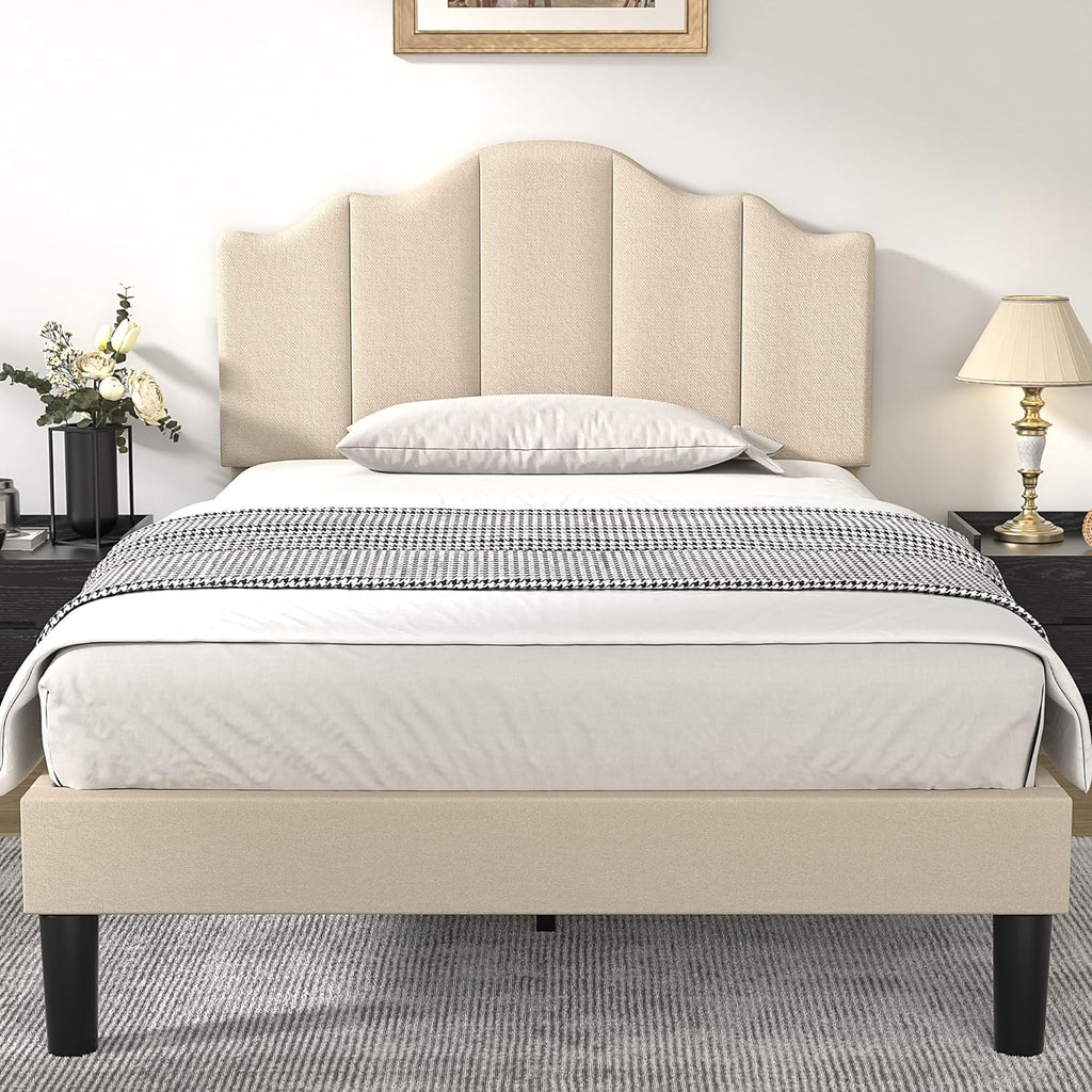 VECELO Upholstered Platform Bed,Mattress Foundation with Headboard