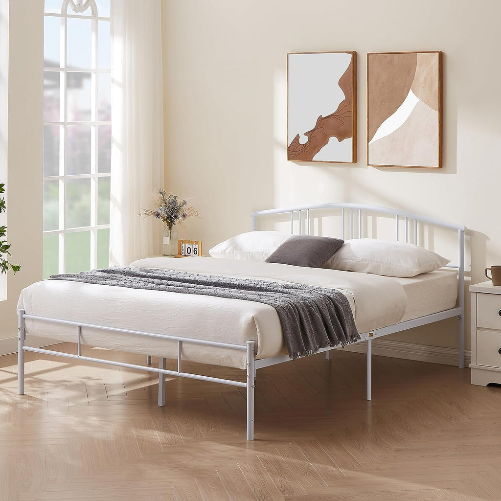 • 【Modern & simple design】This queen size bed frame features curved designs of headboard and straight foot-board, adding warmth and active to your room and provides you a comfortable sleeping and sitting experience. Ideal for kid bedroom dormitory, guest or living room.