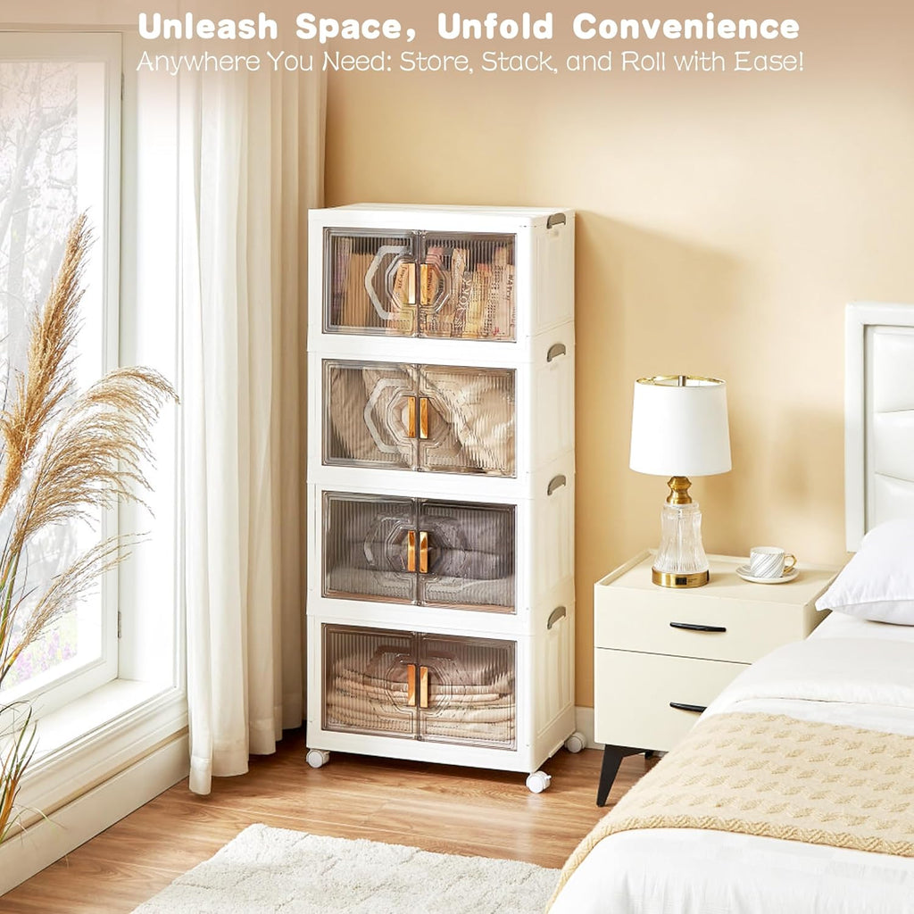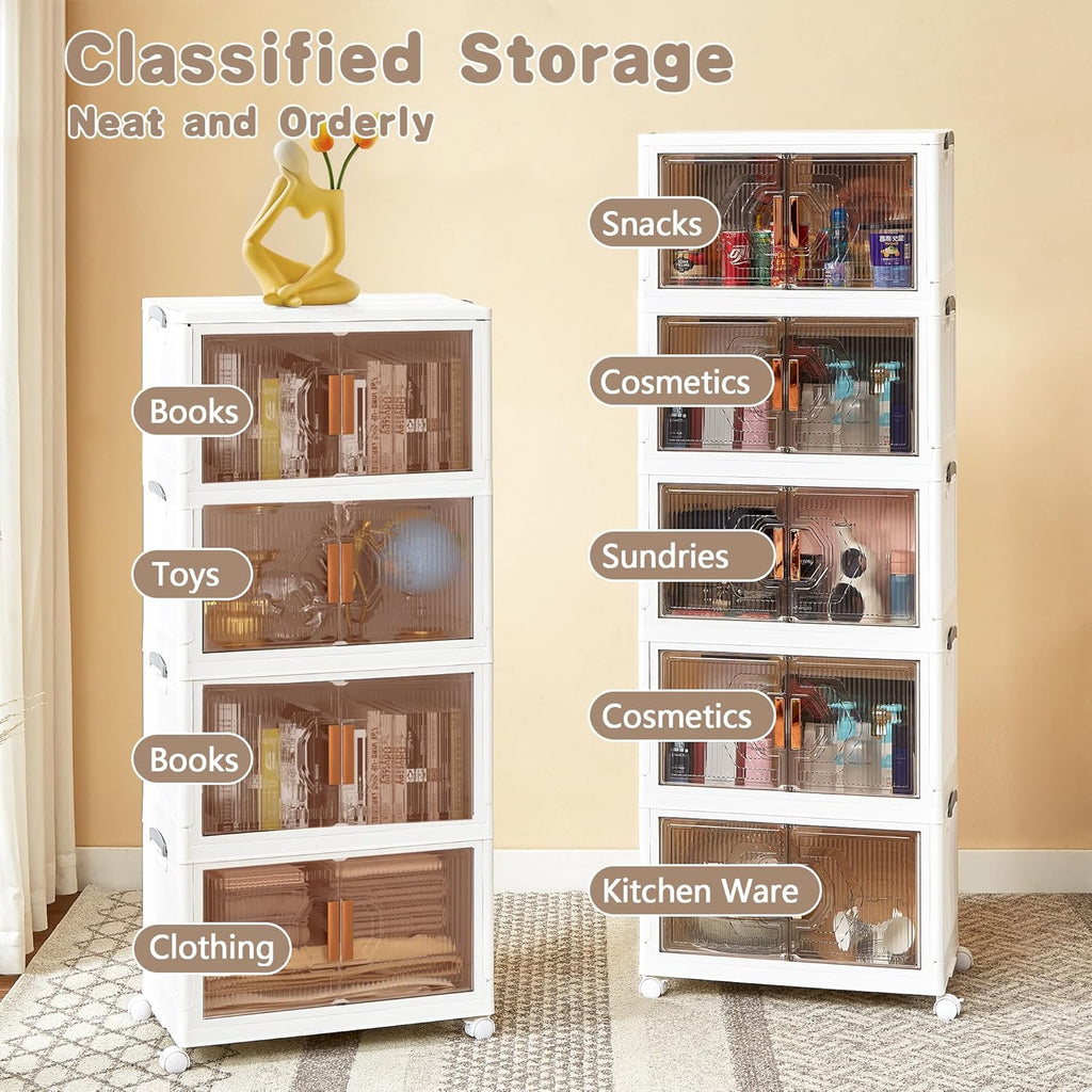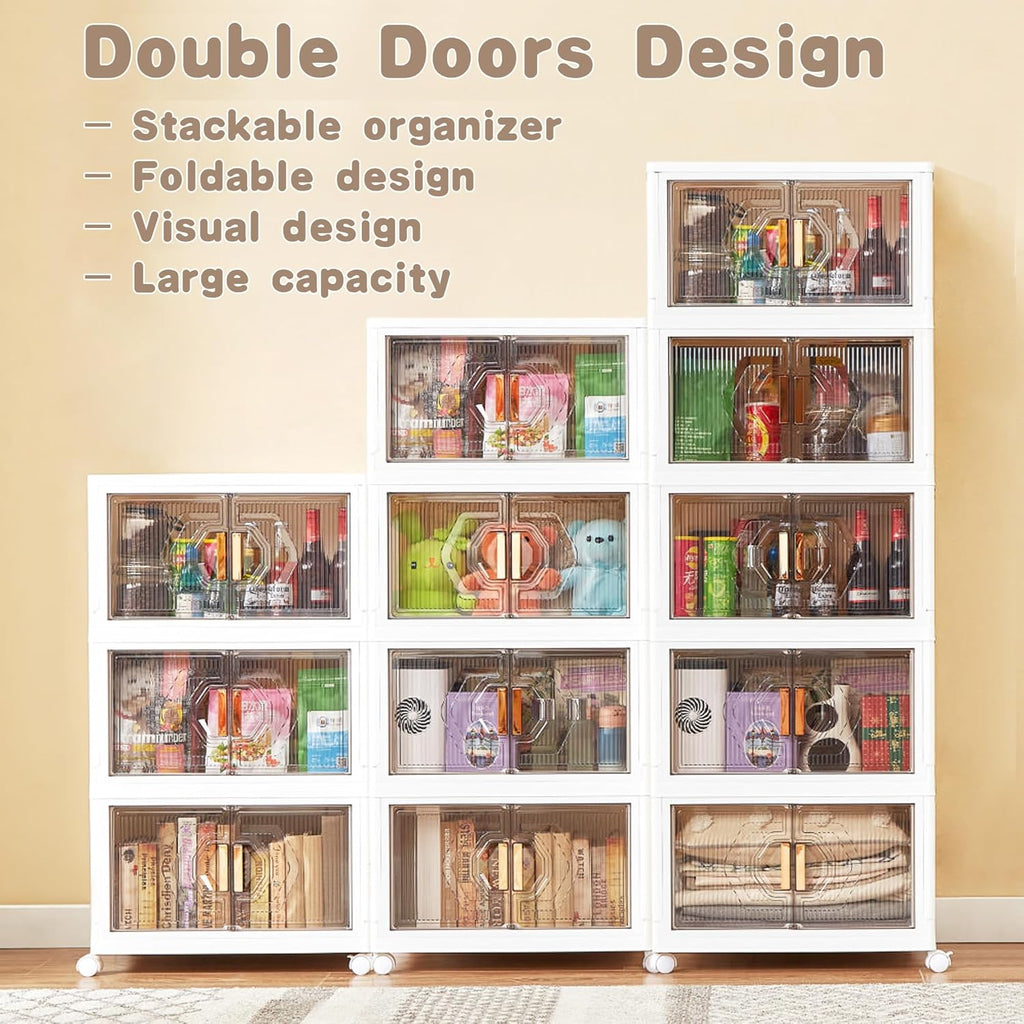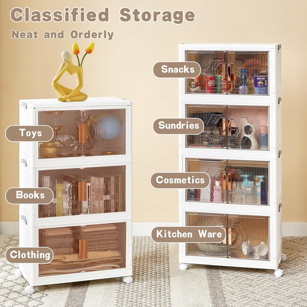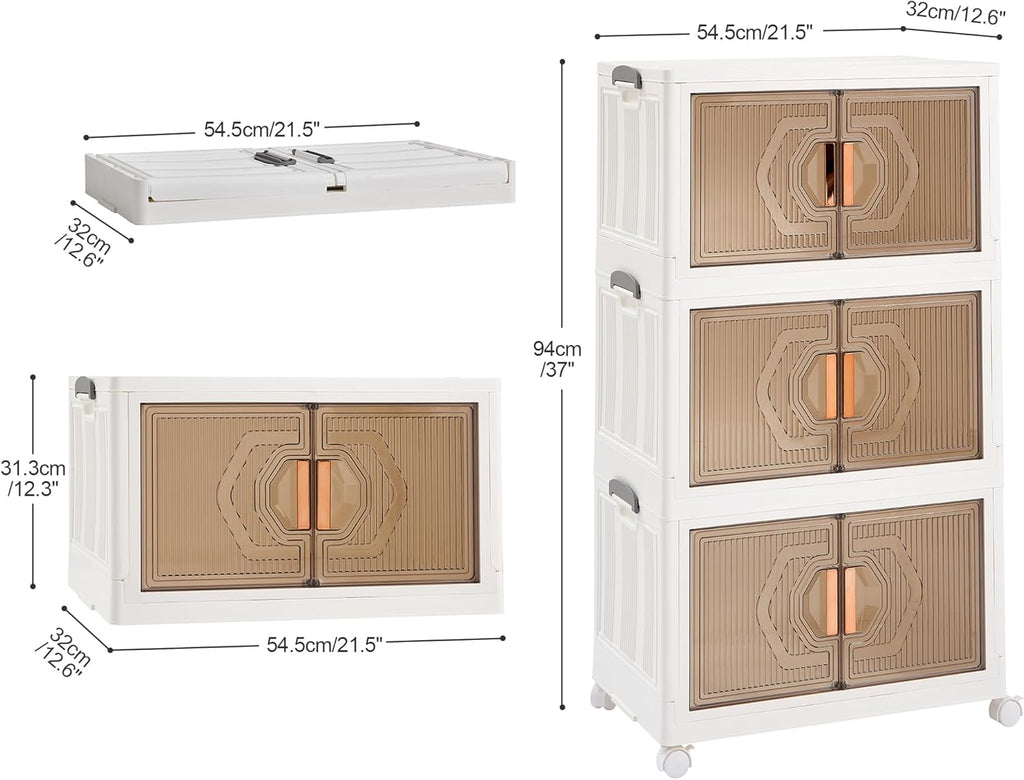 • 【Two Opening Methods】The wheeled folding storage cabinet can be opened in two ways—either through the top lid or the front door. The magnetic lock dual-opening doors, coupled with transparent windows, facilitates easy organization and access while preventing dust. The charming rectangular door of the foldable storage box adds a modern and stylish touch to your home decor.