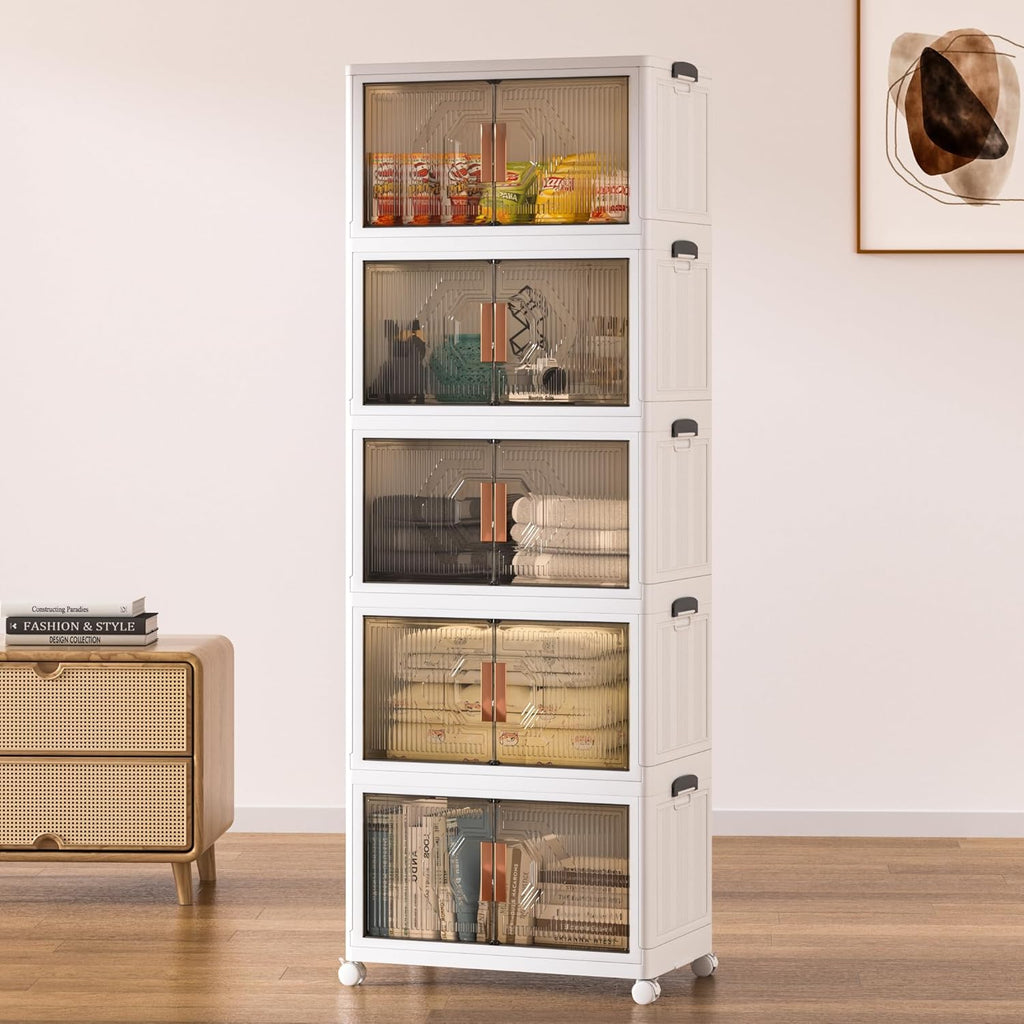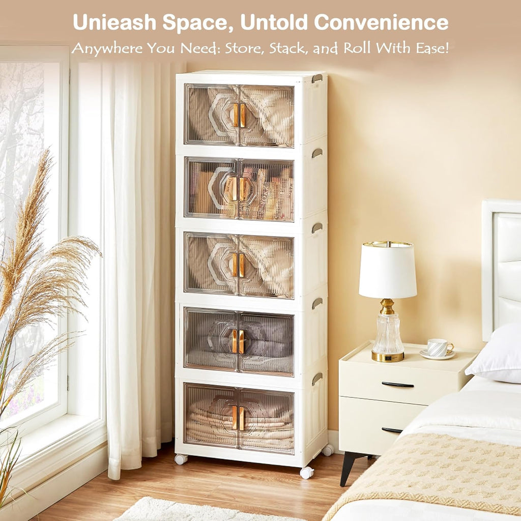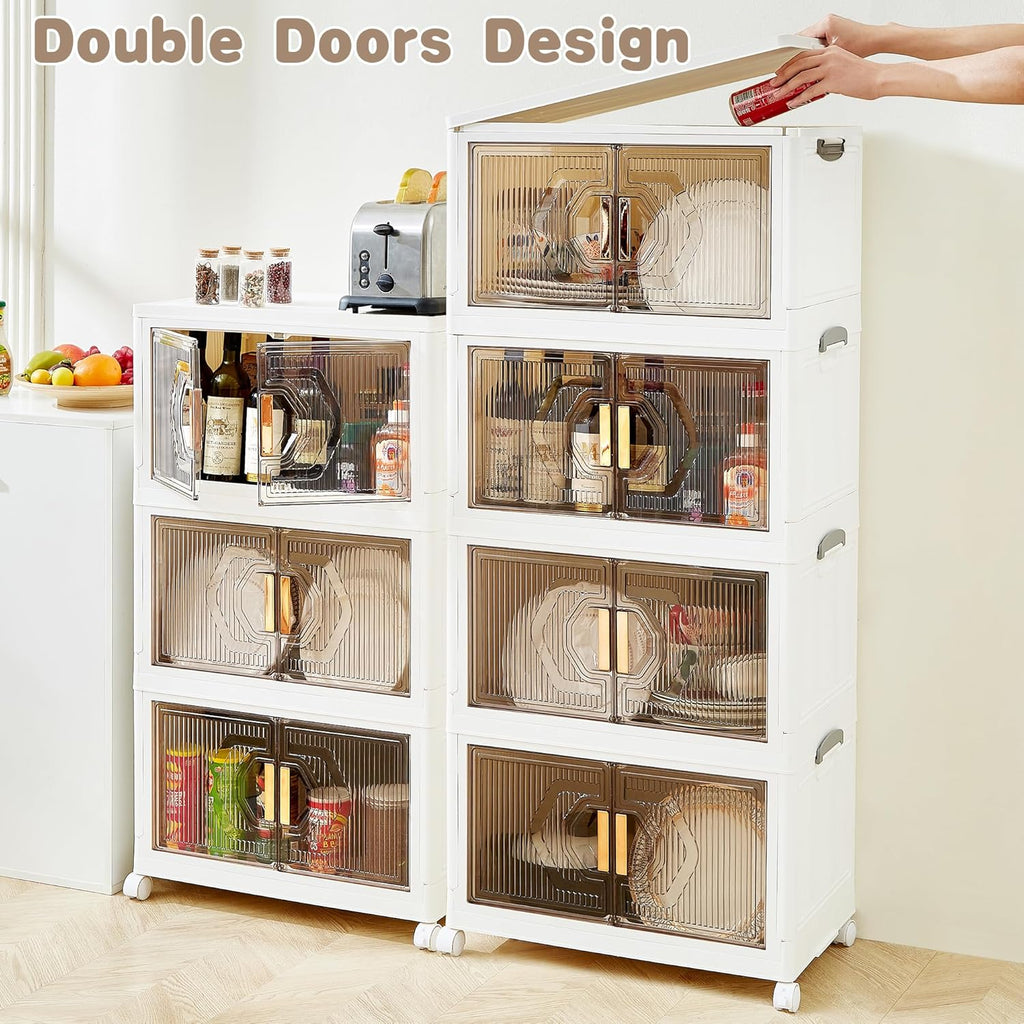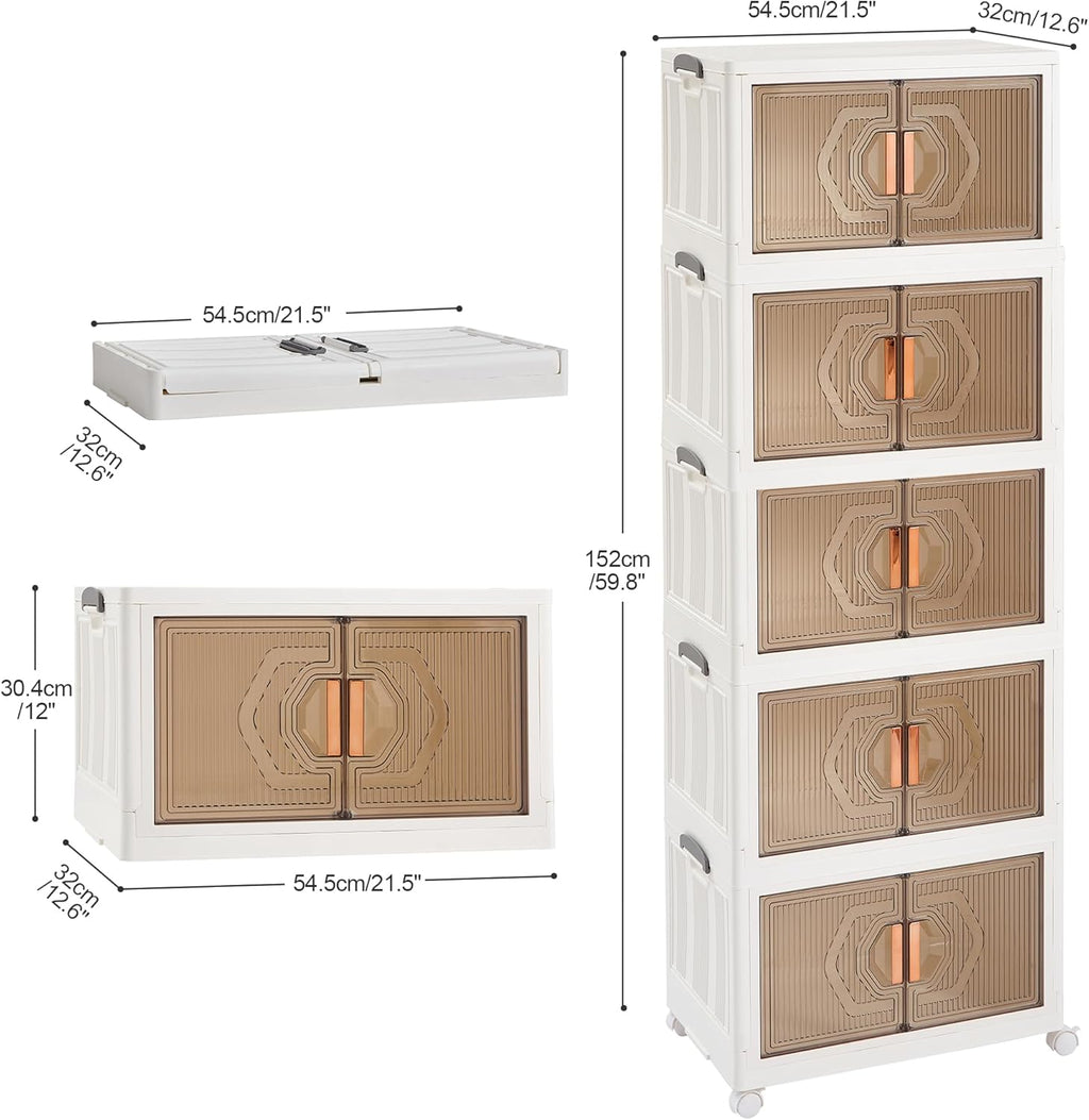 • 【Two Opening Methods】The wheeled folding storage cabinet can be opened in two ways—either through the top lid or the front door. The magnetic lock dual-opening doors, coupled with transparent windows, facilitates easy organization and access while preventing dust. The charming rectangular door of the foldable storage box adds a modern and stylish touch to your home decor.