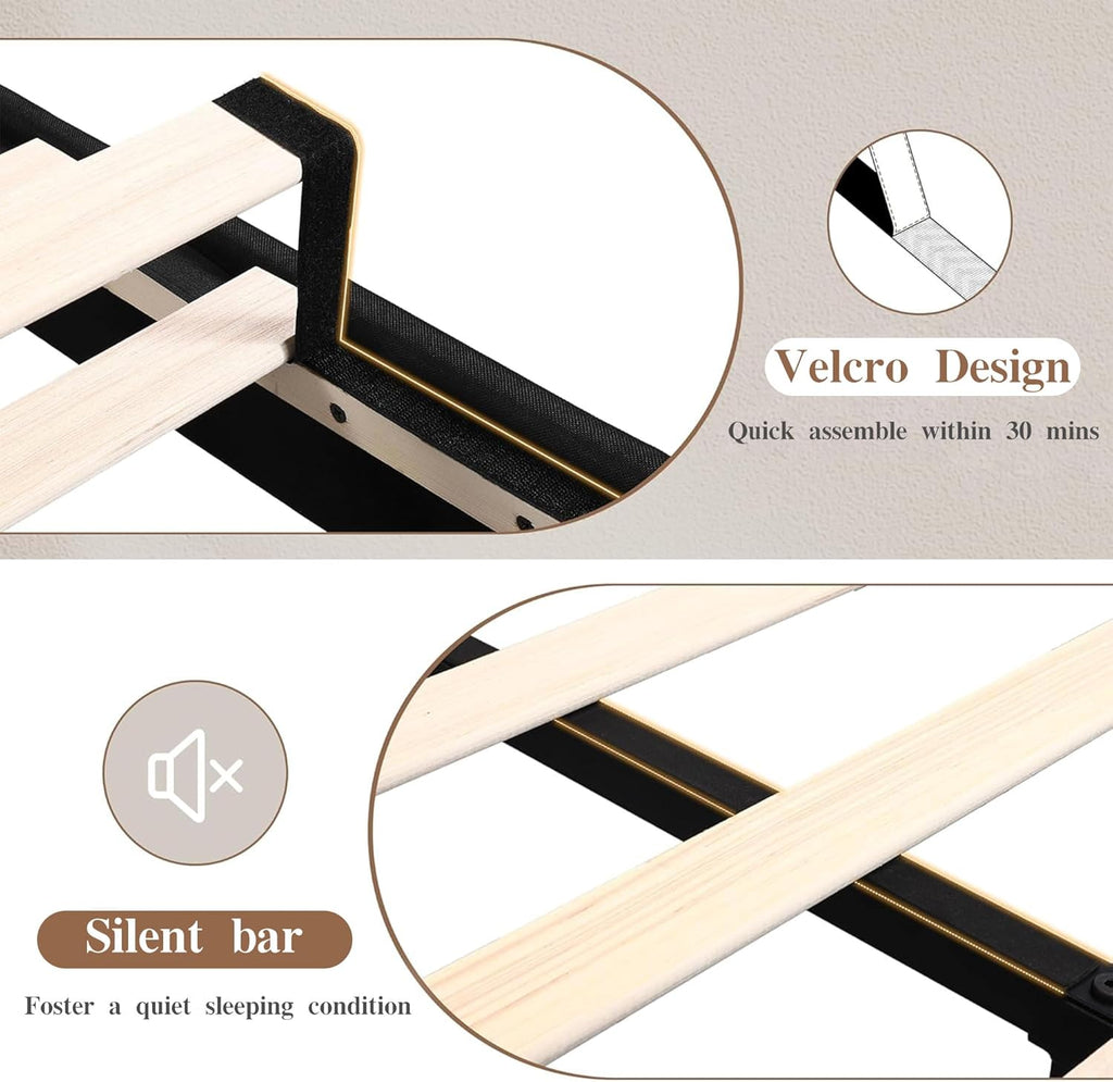 • [Type-C & USB Charging Ports]: This beige twin bed frame built-in Type-C and USB ports (compatible with Android and iPhone) to keep your mobile phone, tablets, lamp, humidifier and other electronic devices always online but no outlet is needed.