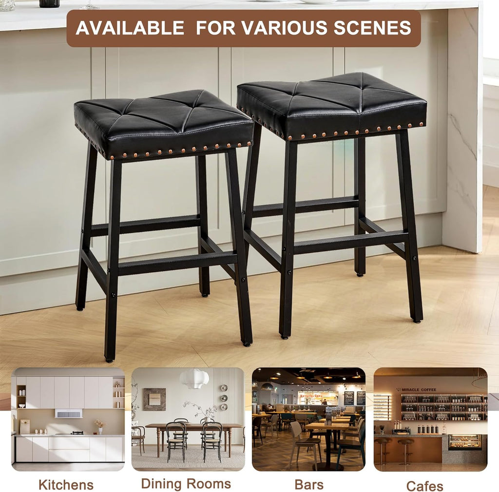 • Comfortable Sitting: These counter stools feature an ergonomic saddle seat and footrests, the seat is upholstered in durable PU material and filled with 3.3” high-density foam for exceptional support and comfort. The bar stool effectively alleviates fatigue from prolonged sitting.