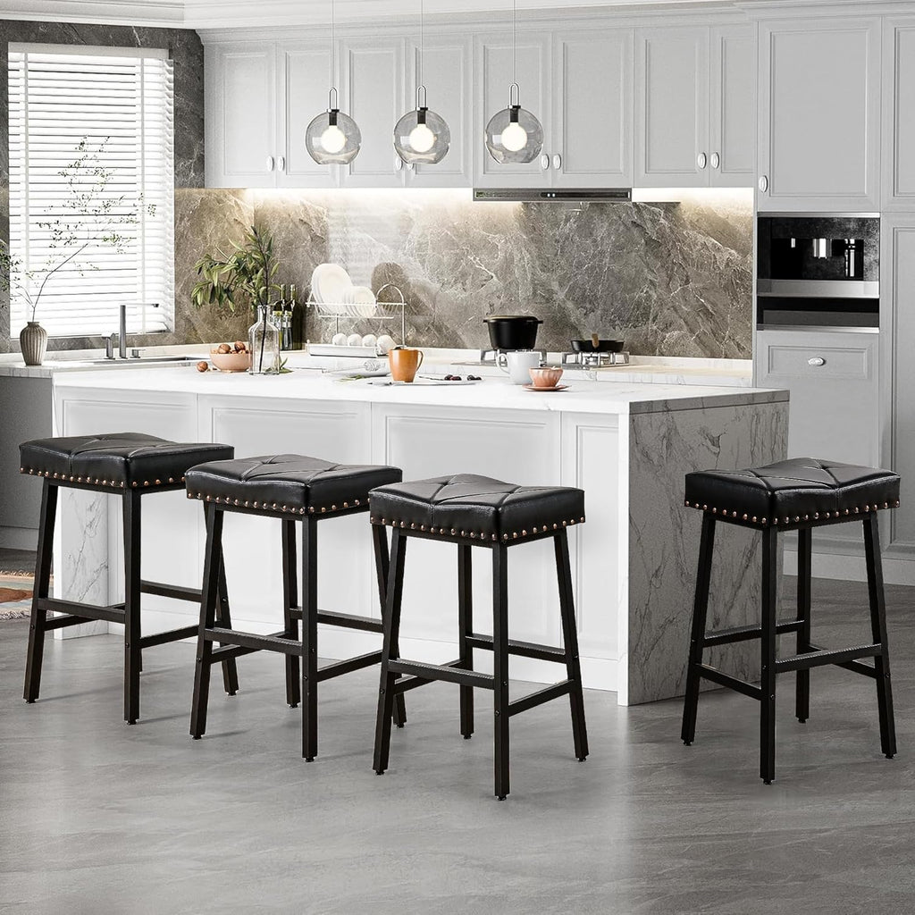 • Wide Application: These leather bar stools is ideal for kitchens, dining rooms, bars, and cafes. The backless stool is space-saving and easy to store under counters. With a 286 lbs capacity, VECELO bar height stools fit most individuals and suit 34 to 38-inch counters perfectly.