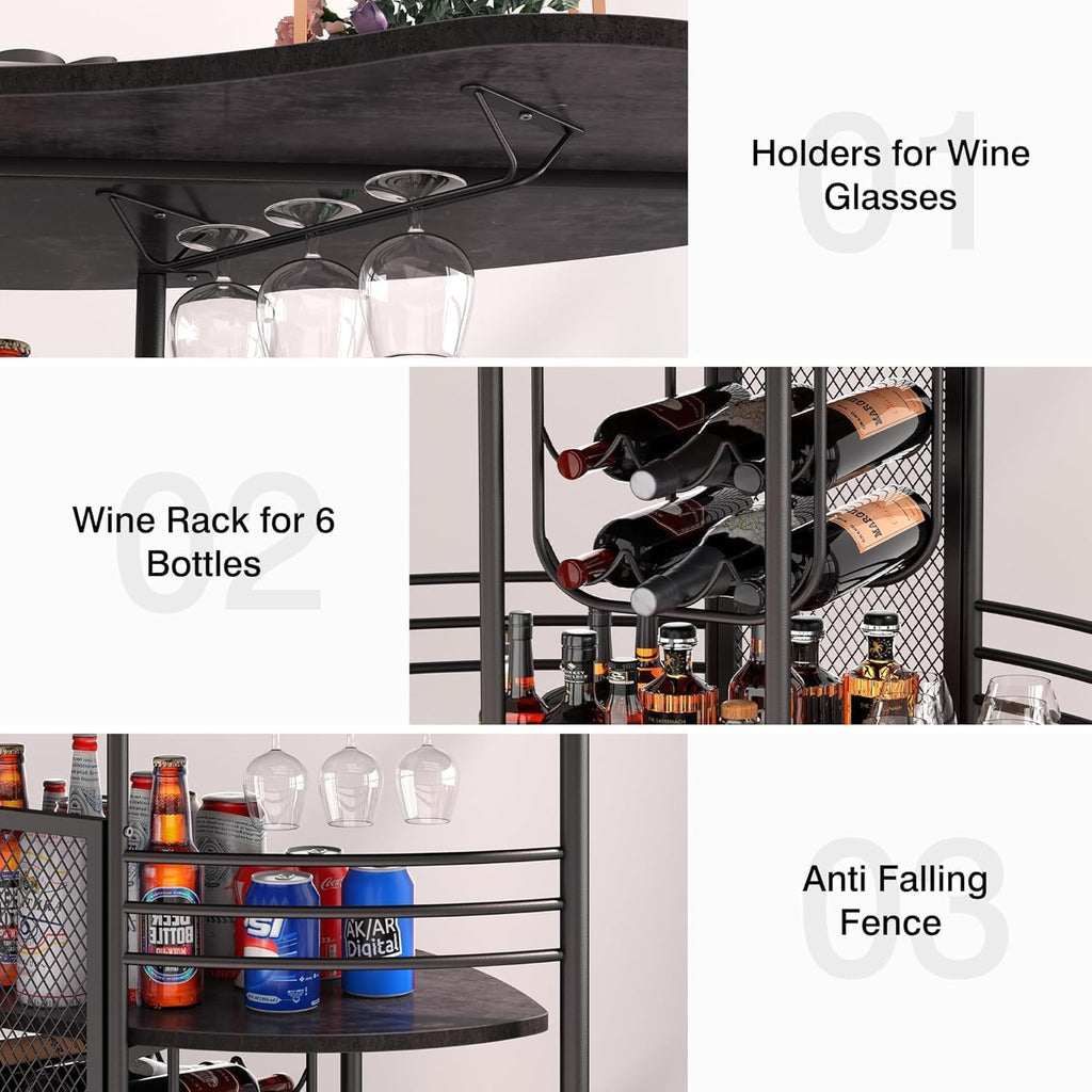 • Ample Storage&Function: It features wine racks for liquor, wine glass holders, and open 3-tier storage shelves; open shelves design provides space for wine and snacks; bottle slots are enough to hold champagne; stemware holders accommodate kinds of stemware;