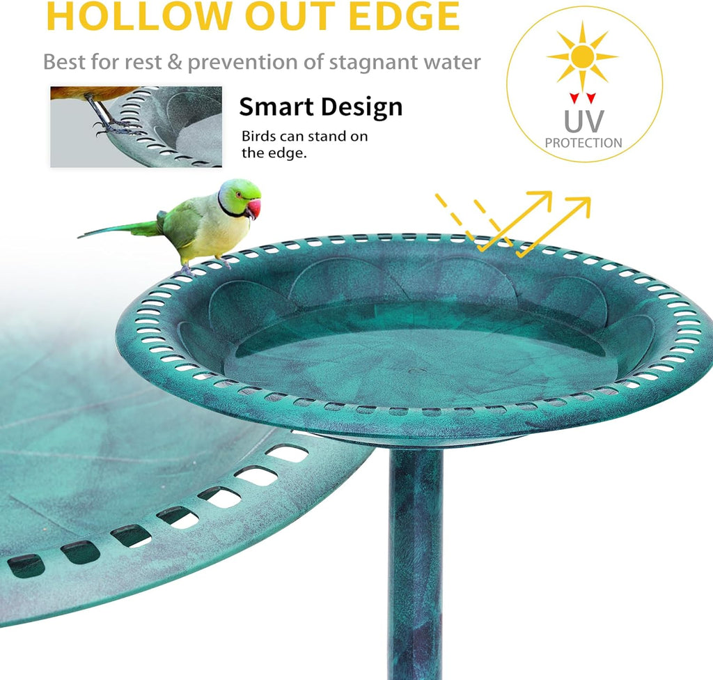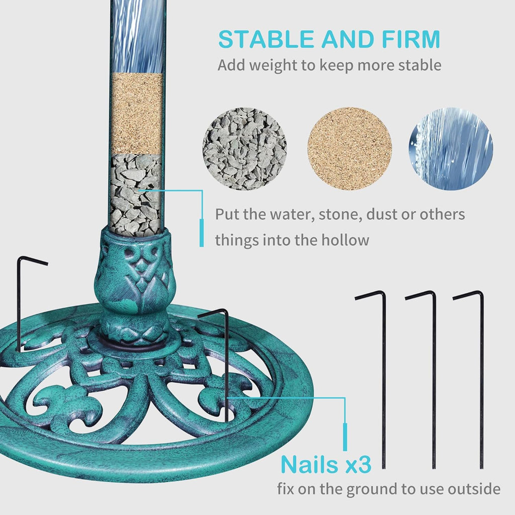 • 【Sturdy Base】Equipped with 3 ground stakes, our birdbaths for outdoors is firmly secured in place, not easily toppled. For additional stability, you can fill the base with gravel or stones.
