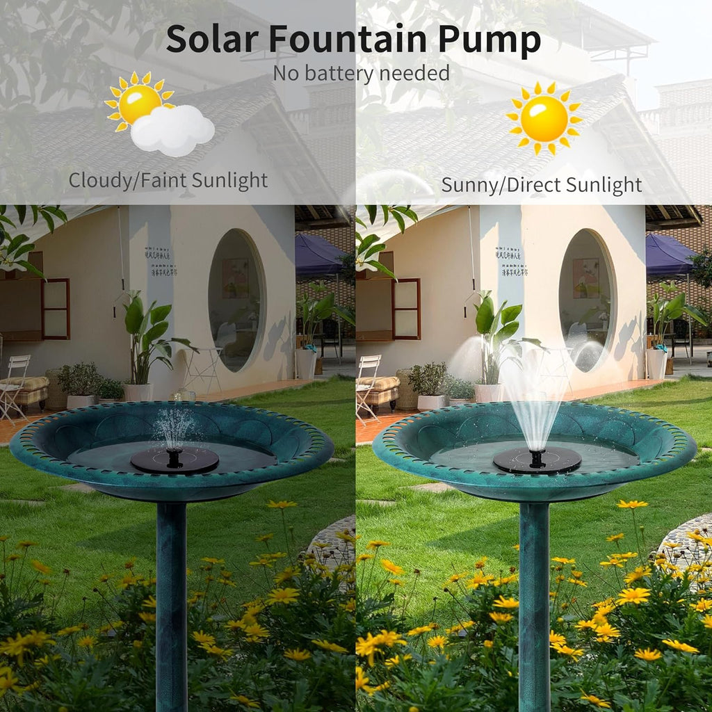 • 【Garden Decor】Our bird bath bowl and water fountain outdoor not only bring life to your garden but also attract birds and other wildlife. Perfect for pools, ponds, fish tanks, and aquariums, the solar water fountain provides a clear, flowing water source, ensuring your garden becomes an eco-friendly oasis and offers a high-quality water supply for birds and other creatures throughout the summer.