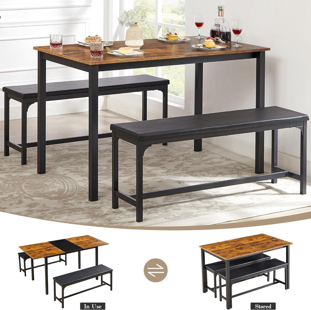 • 【Stylish Design】The expandable dining set features a simple design with woodgrain tabletop and black frame, versatile for various settings. This expandable dining table benches serve as a functional addition to kitchen, dining room, living room, office, and study room.