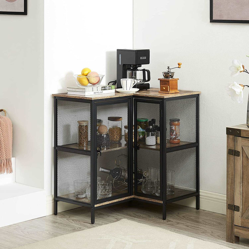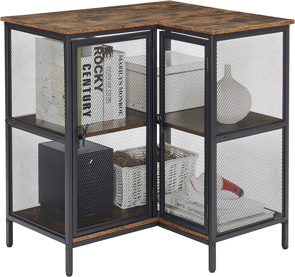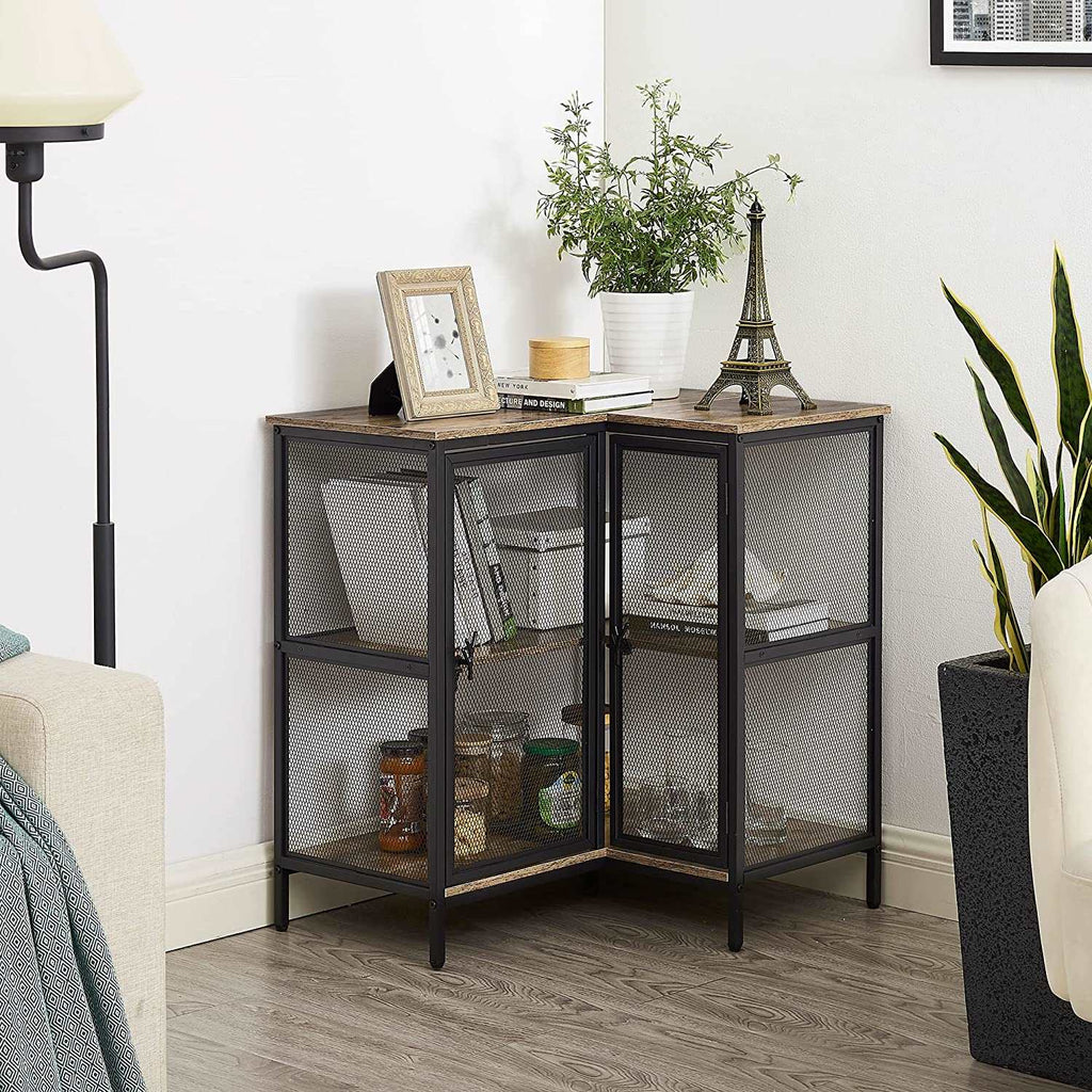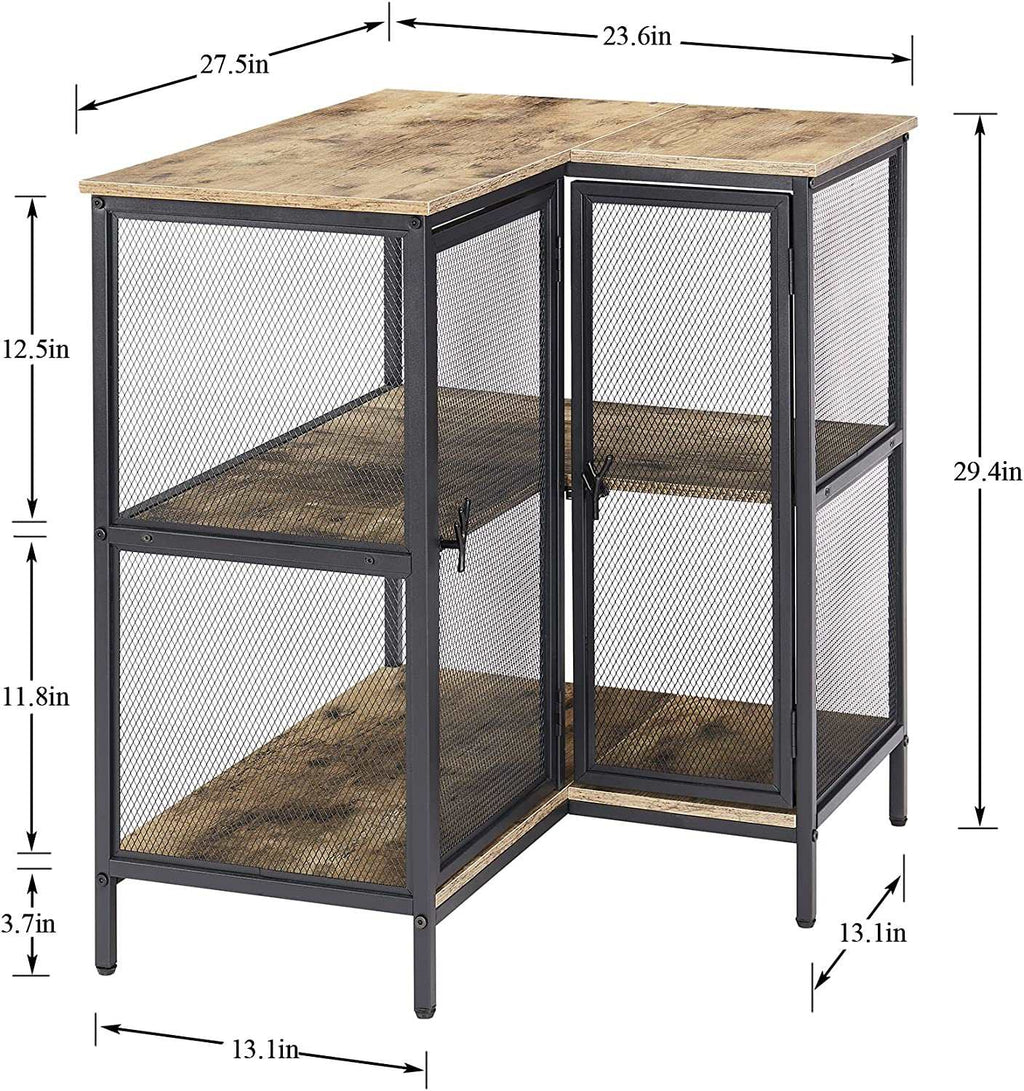 VECELO 3 Tier Corner Cabinet with Doors and Storage Shelves, Industrial TV Multipurpose Free-Standing Table