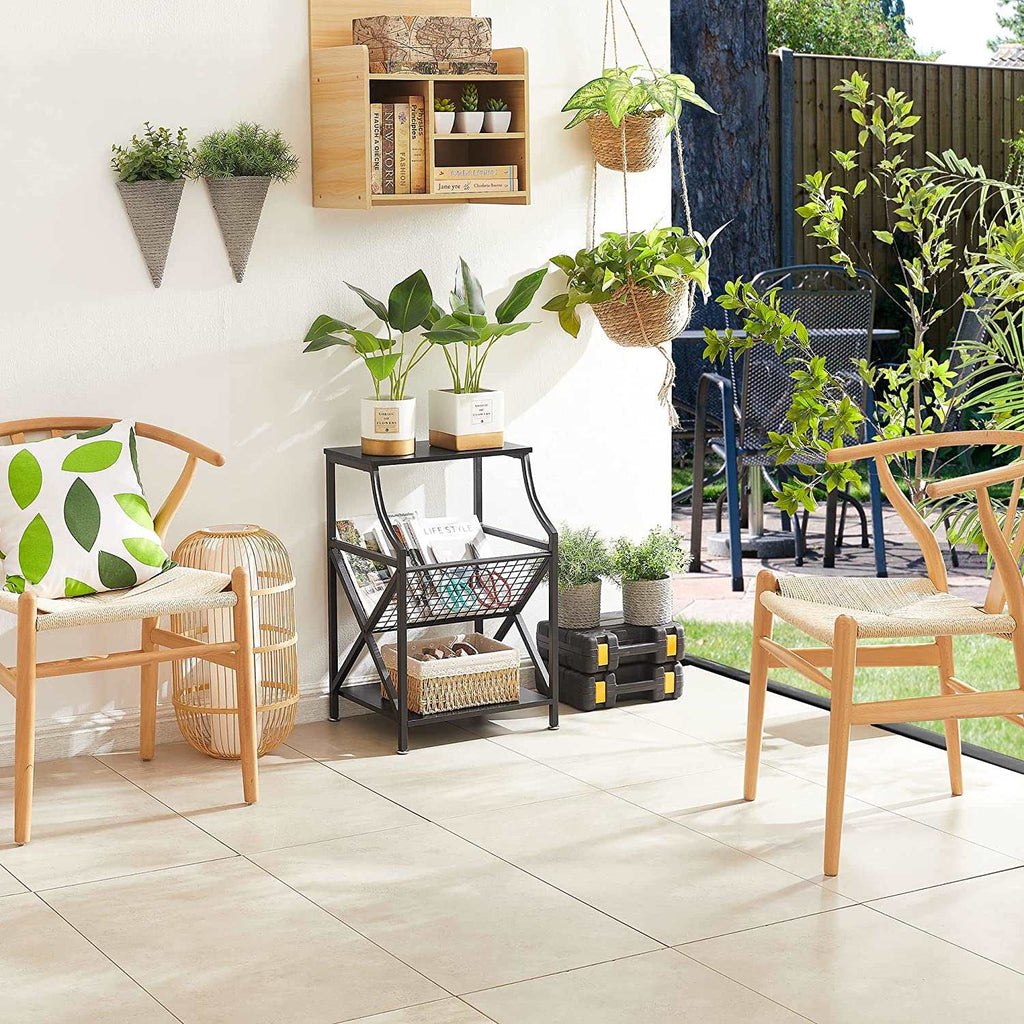 VECELO 3-Tier End Table with Storage Magazine Holder