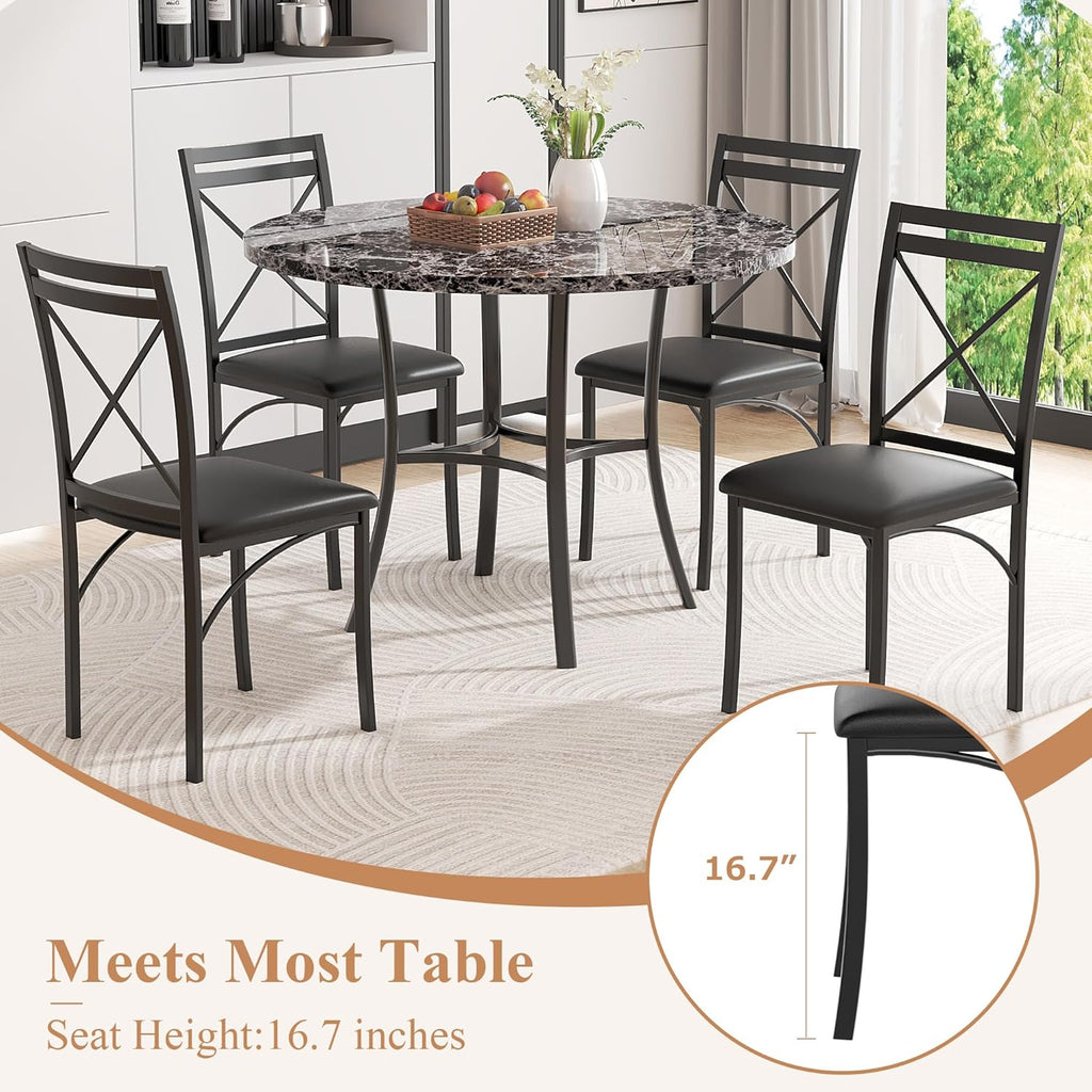 VECELO 36" Round Dining Table for 4, Faux Marble Dinette with Metal Frame for Kitchen