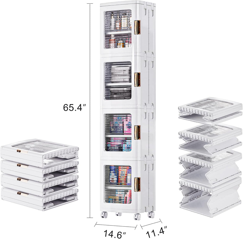 VECELO 4-Tier Plastic Tall Narrow Storage Cabinet with Movable Wheels