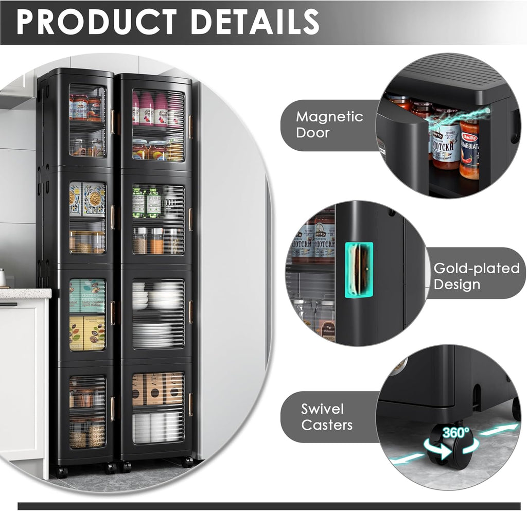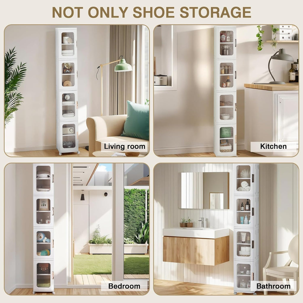 • Anti-Tip & Sturdy: Our anti-tip gears ensure safety and stability, while fixed fasteners secure each layer to prevent the narrow cabinet from tilting. Made from durable ABS, this tall cabinet offers a robust frame and strong load-bearing capacity.