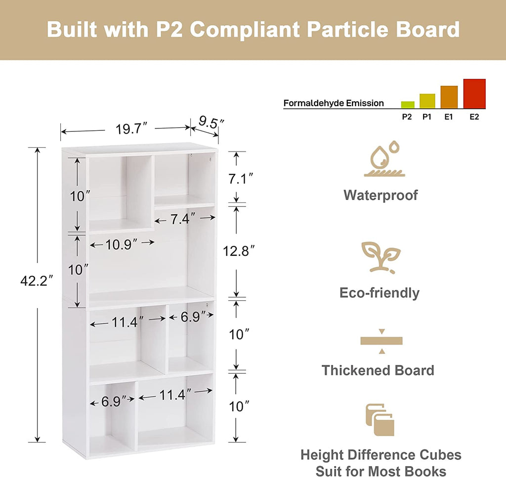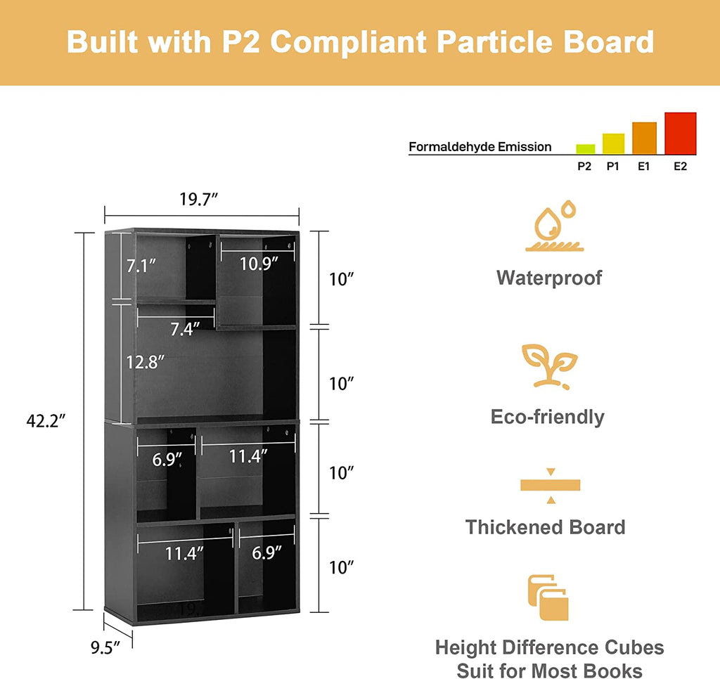 • 【Modern Cubby Organizer】: This Slim Bookcase Sized at 9.5”D x 11.8”W x 42.2”H, Easily Fits the Gaps Between Your Couches or the Tight Spots Beside Your Bed.