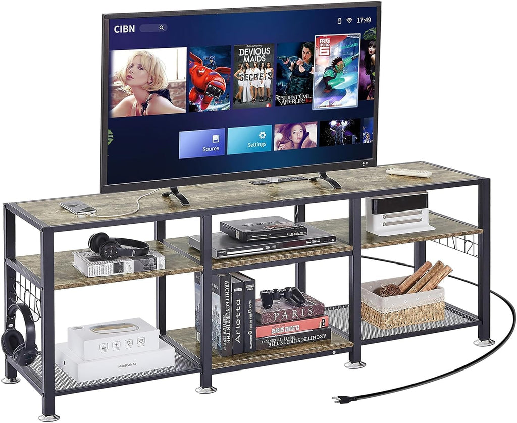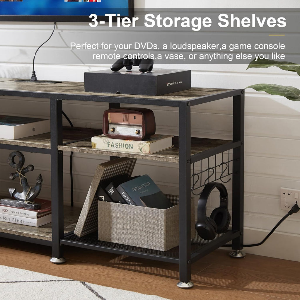• ✔️[Ample Spacious Storage] - This industrial TV stand features 3 tier open shelves to store and display all your entertainment essentials such as DVDs, a loudspeaker, a game console, remote controls, a vase, or anything else you like. The S-shape hooks on the side of the TV stand can hang headphones, keys, etc.