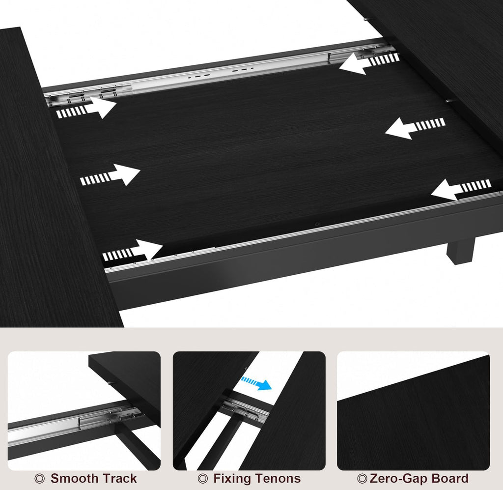 • Excellent Space Adaptability: This black wooden expandable dining table set is specifically designed for small spaces. With its ingenious structure and size planning, this kitchen table set can easily fit into compact environments such as kitchens and coffee shops. Moreover, it can comfortably accommodate 4 to 6 people simultaneously, enabling you to create a spacious dining experience even in a limited space