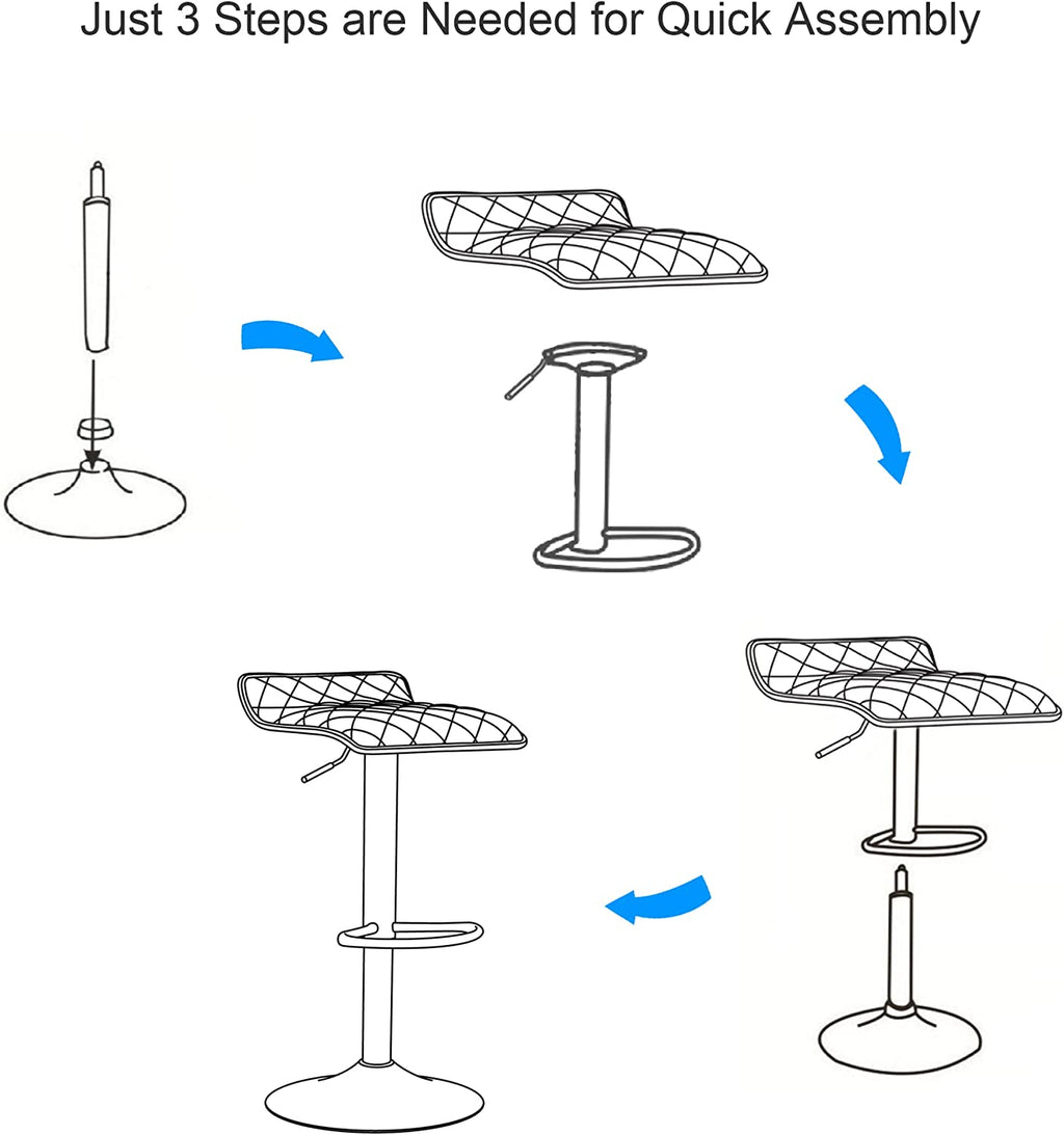 • Worry about Assembly? Just a piece of cake and only a few minutes is needed for putting together the barstool set. Check the parts and easy-to-follow instruction for quick assembly.