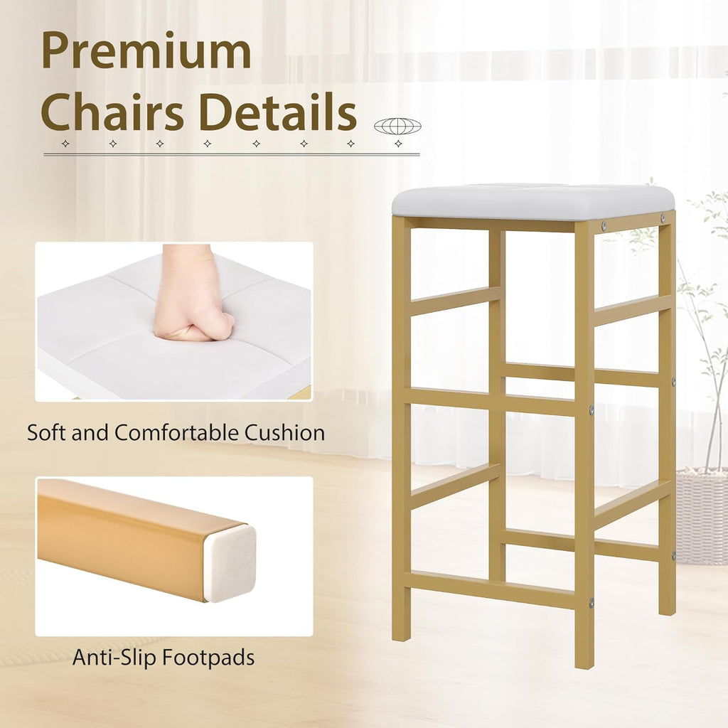 • đŸ·ă€Set of 2 Bar Stools with PU Cushion】Indulge in comfort with our set of two bar stools, upholstered in durable PU leather and filled with high-density sponge. The added footrests on both the bar-height table and stools contribute to a relaxing atmosphere, perfect for extended chatting sessions. Each stool boasts a substantial weight capacity, ensuring your comfort and relaxation even after prolonged use.