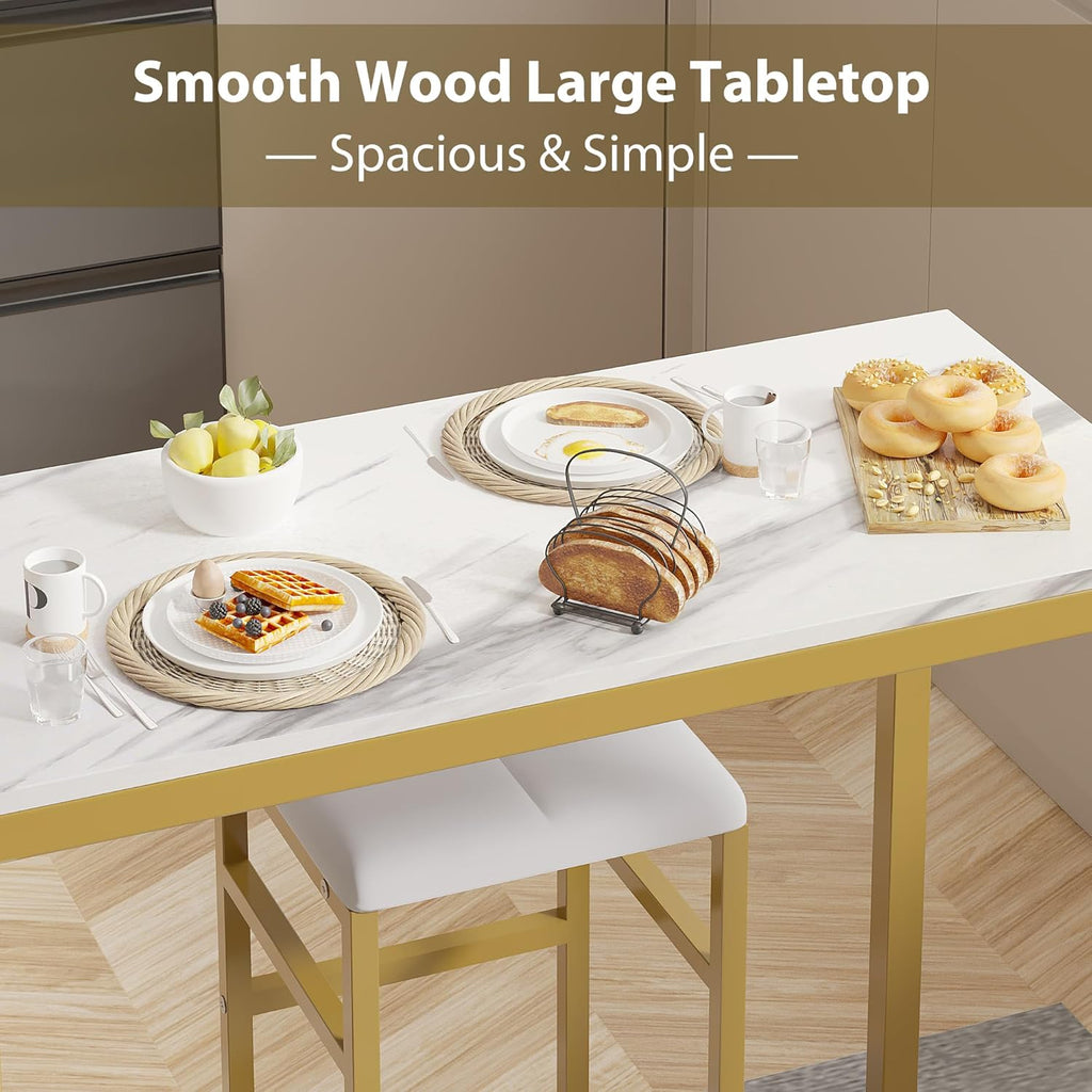 • đŸ·ă€3 Piece Bar Table and Chairs Set】Elevate your dining experience with our 3-piece bar table set, featuring a spacious bar table (48"x15.35"x48") and two comfortable bar chairs (15"x15"x23.6"). The expansive tabletop provides ample space for your favorite meals, creating the perfect setting for sharing delicious food with your loved ones. Transform your home into a bistro haven with this multifunctional island table and savor joyous moments with your family!