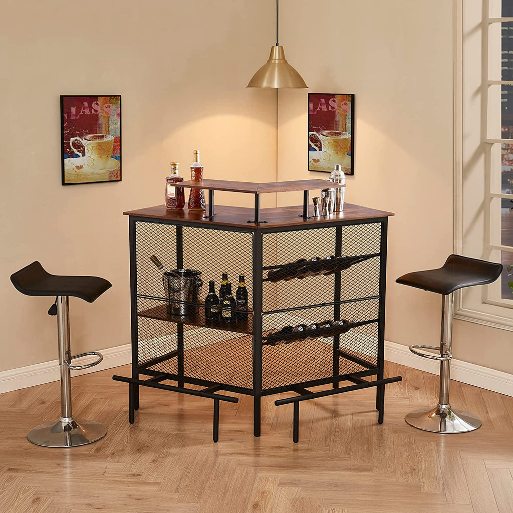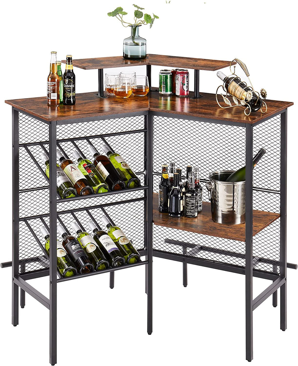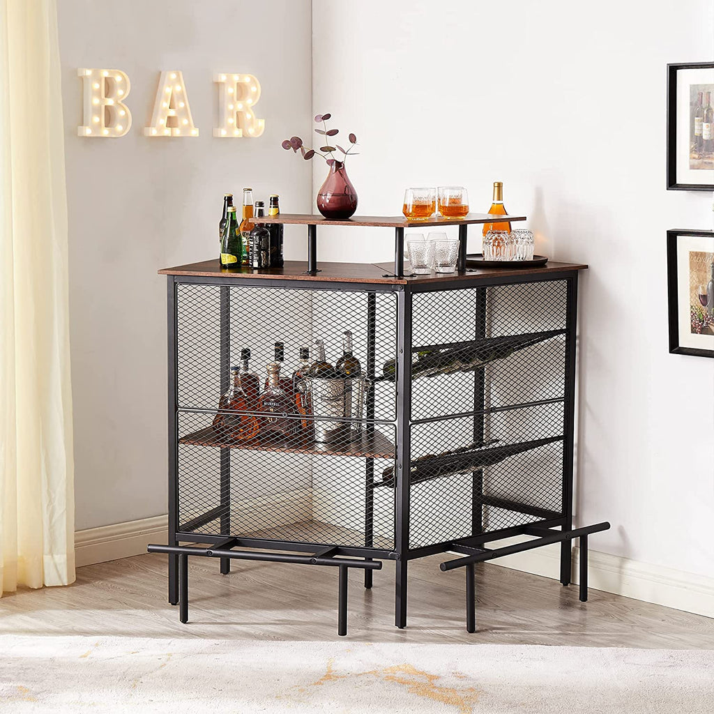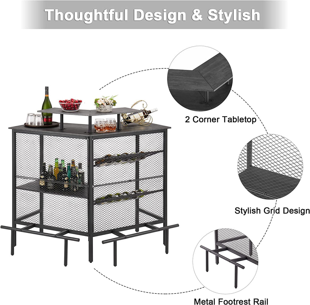 • 【Simple and unique style】This 3-tier wine storage bar is a good choice for home entertainment. The corner design and black perforated metal mesh can be perfectly integrated with the decoration of your home to create an elegant and fun drinking place for you;