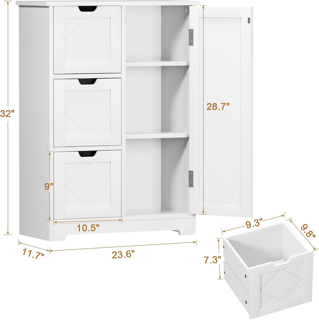 • 【Adjustable Design】: This bathroom storage cabinet comes with adjustable shelves, 3 layers of height choices, allowing for customized storage space to fit items of various sizes.(Each shelf can support up to 22lb)