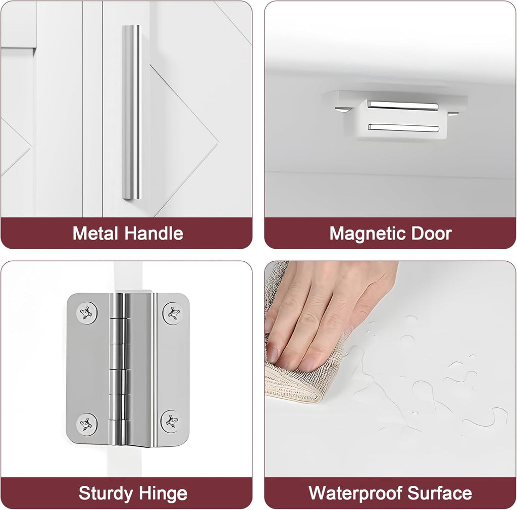 • 【Space-Saving and Stylish】: Its compact design fits well into smaller spaces, simple white design with clean lines and silver handles, blending seamlessly into any décor.making it an excellent choice for apartments or homes with limited storage options.