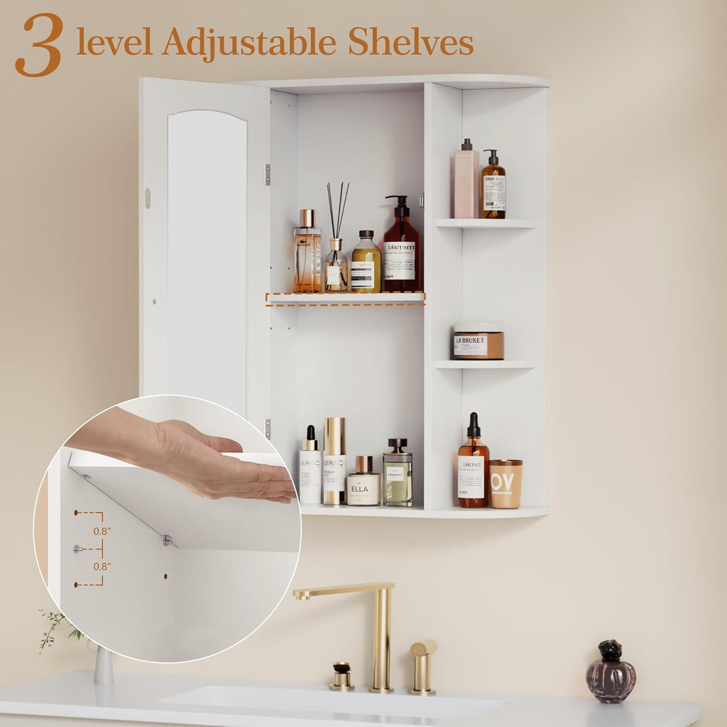 • Height-Adjustable Shelf: Shelf behind cabinet door can be adjusted to 3 height positions. Wall mount bathroom cabinet provides ample space for items of different size.