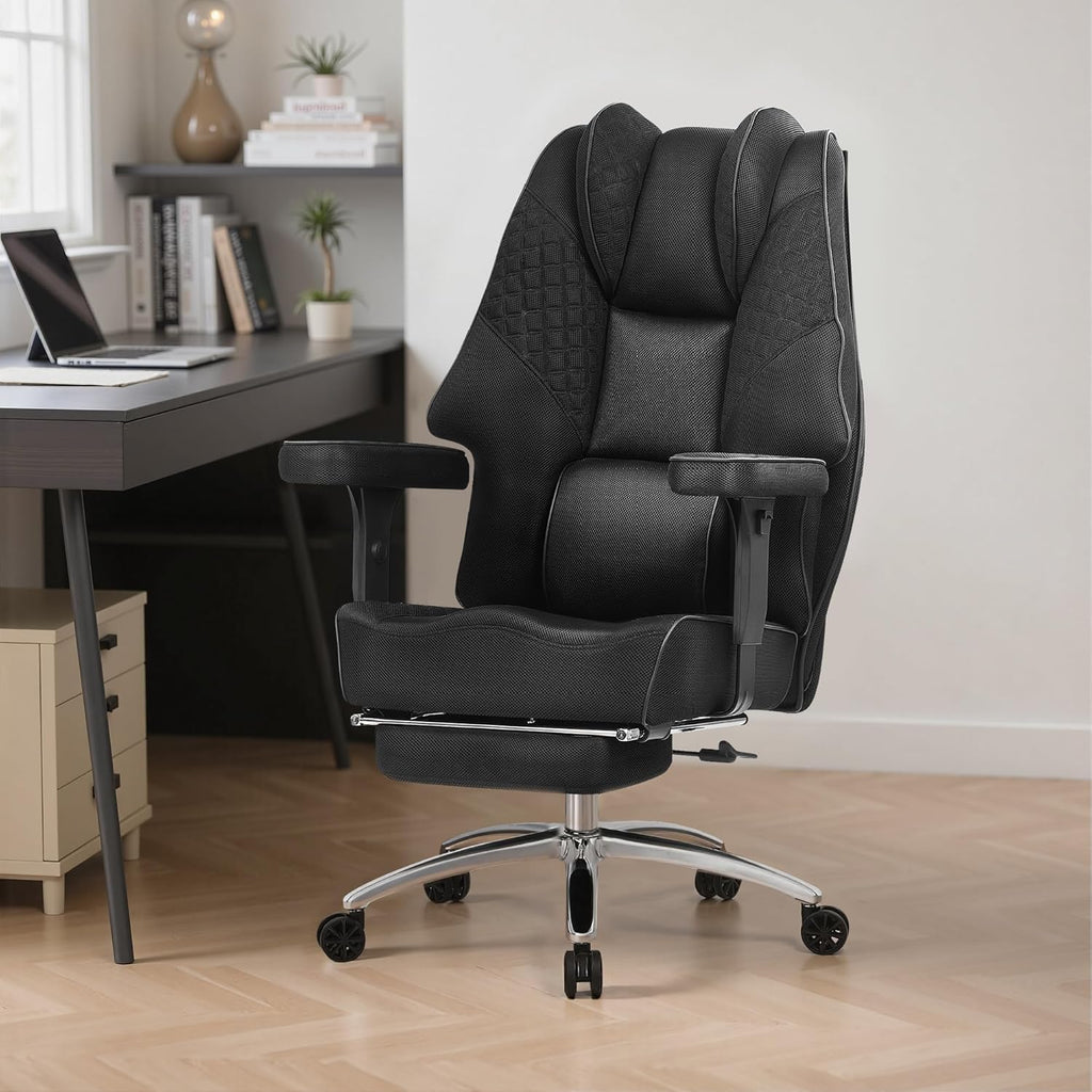 • Breathable Mesh Office Chair: Our high-back office desk chair features premium, tear-resistant mesh that promotes continuous airflow, keep you cool and comfortable during extended sitting. Durable and easy to maintain, it outlasts traditional leather