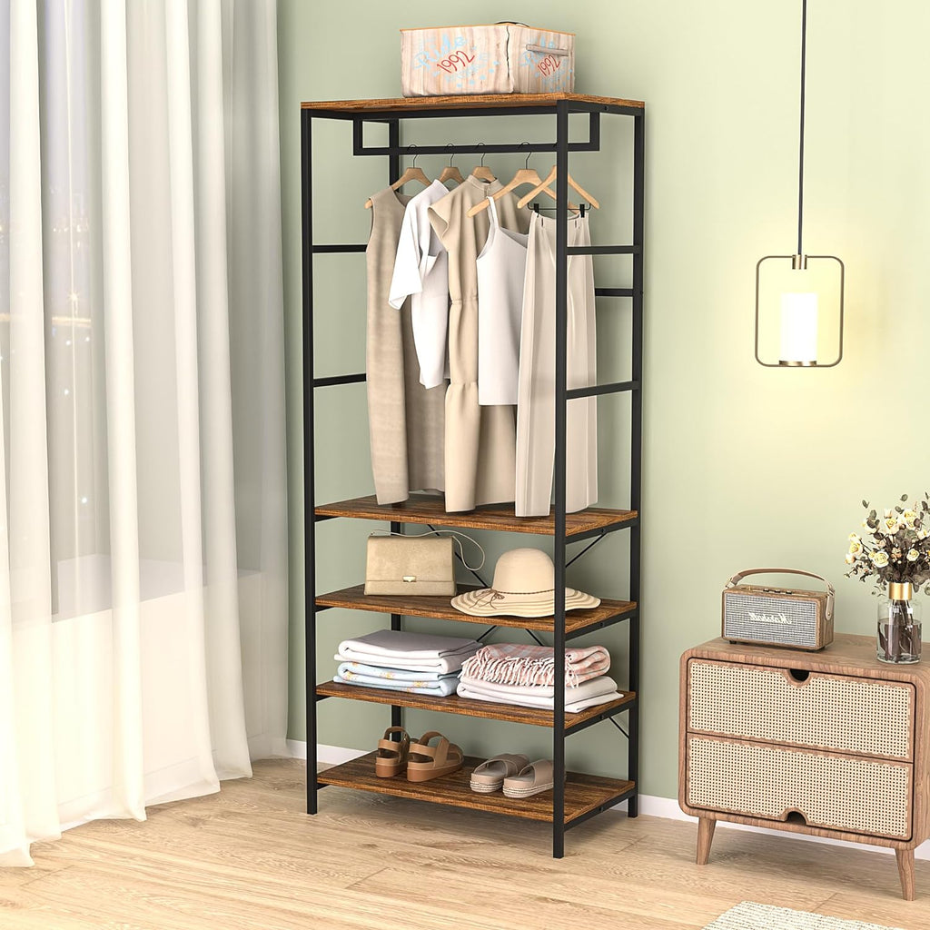 VECELO Coat, Entryway Hall Tree with 4-Tier Shoe Rack and Hanging Rod