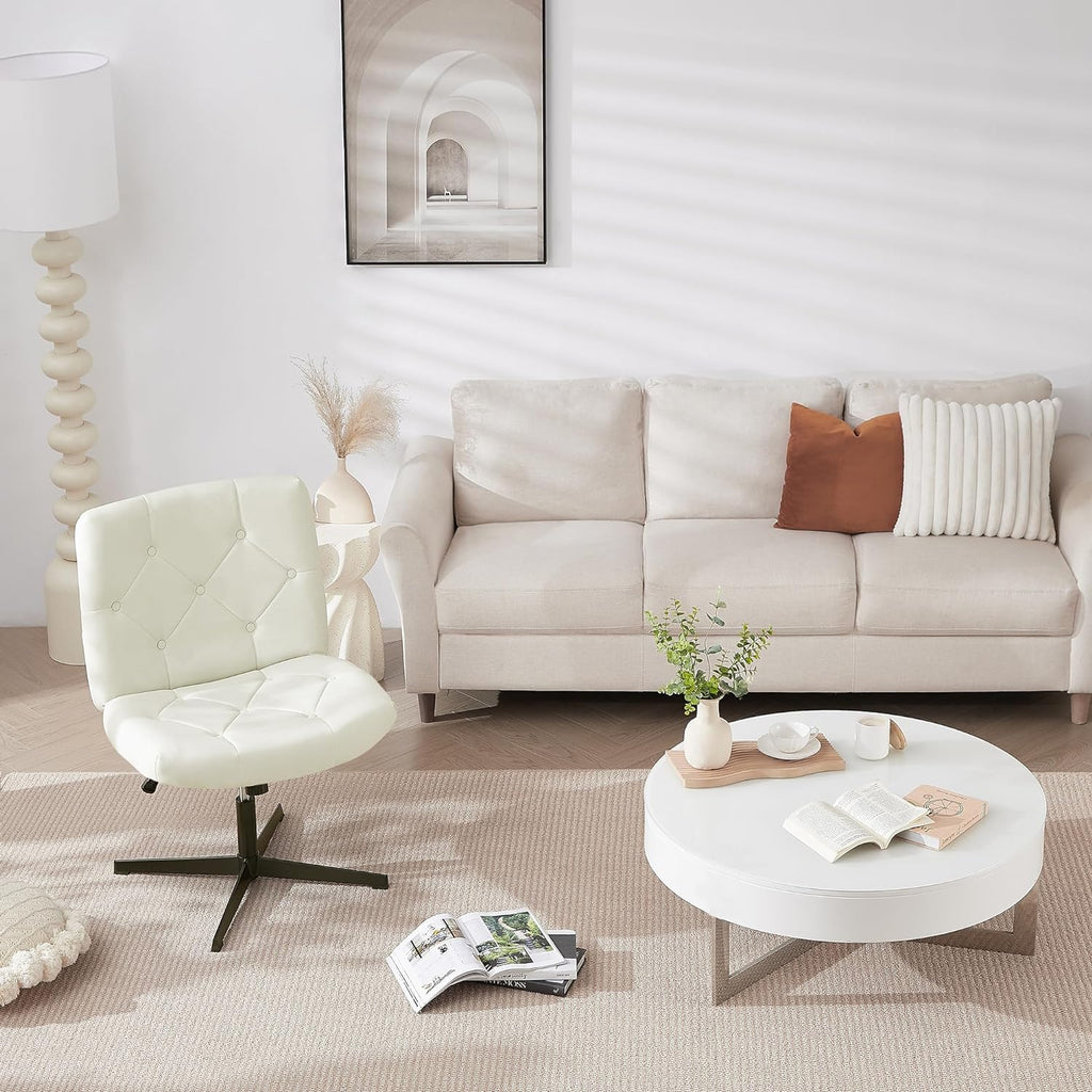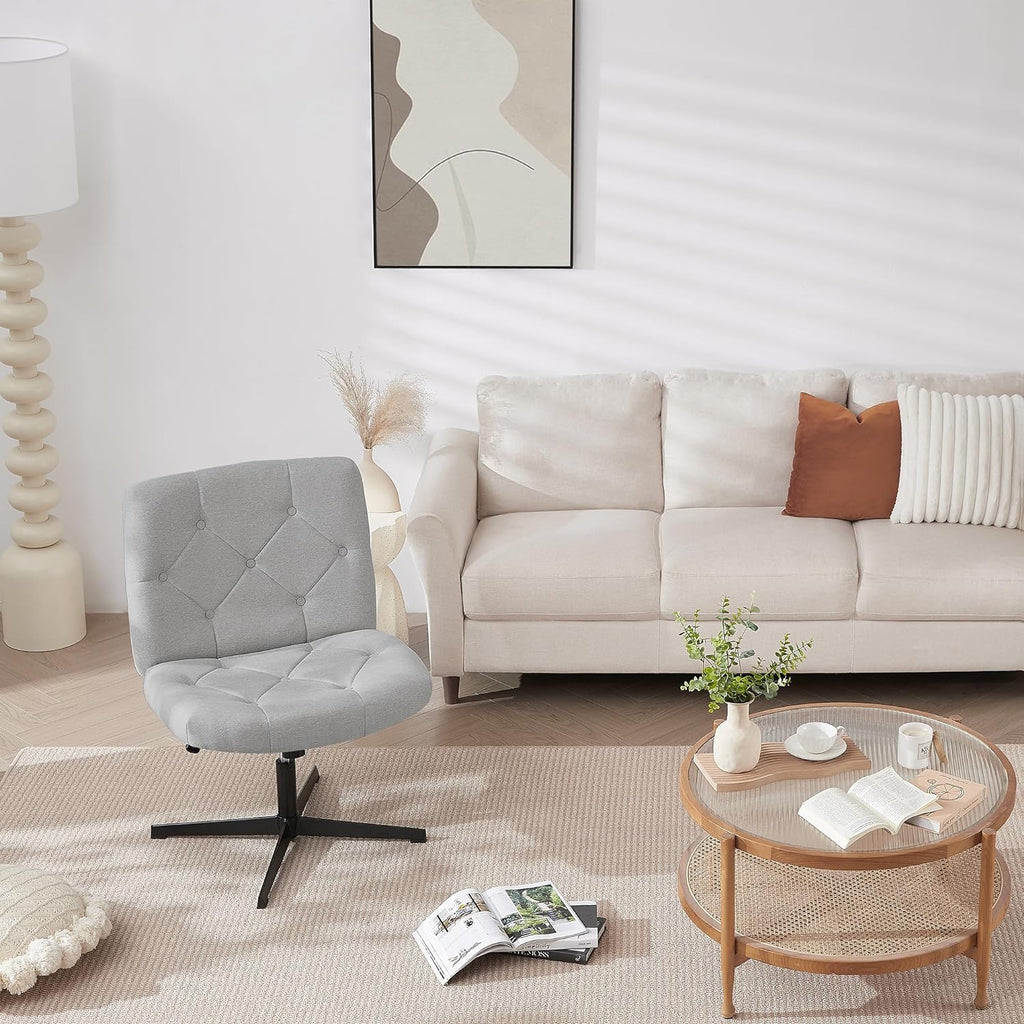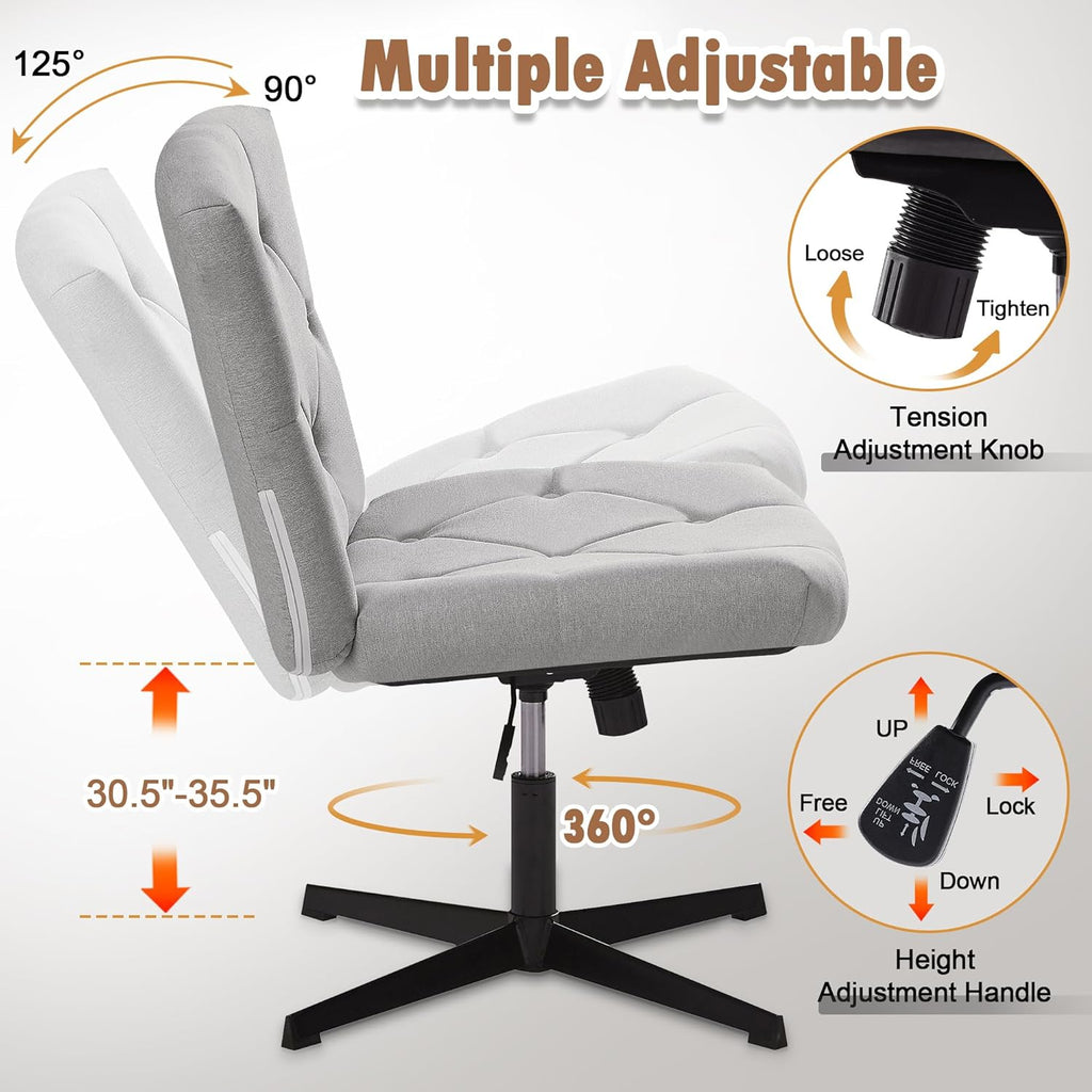 • 【Multifunctional Linen Seating】Our cross leg chair with adjustable height (around 5 inches), 360-degree swivel, and a recline angle of 90-125 degrees offer versatile use in both home and office settings. Customize the office chair's height and recline tension for personalized comfort.
