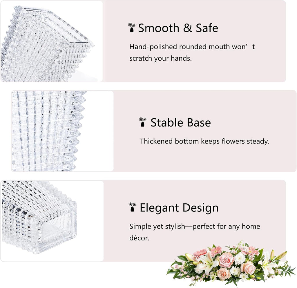 • legant Crystal Design: Crafted from premium clear glass with a unique textured square pattern, this decorative vase adds a modern and luxurious touch to any home or office space