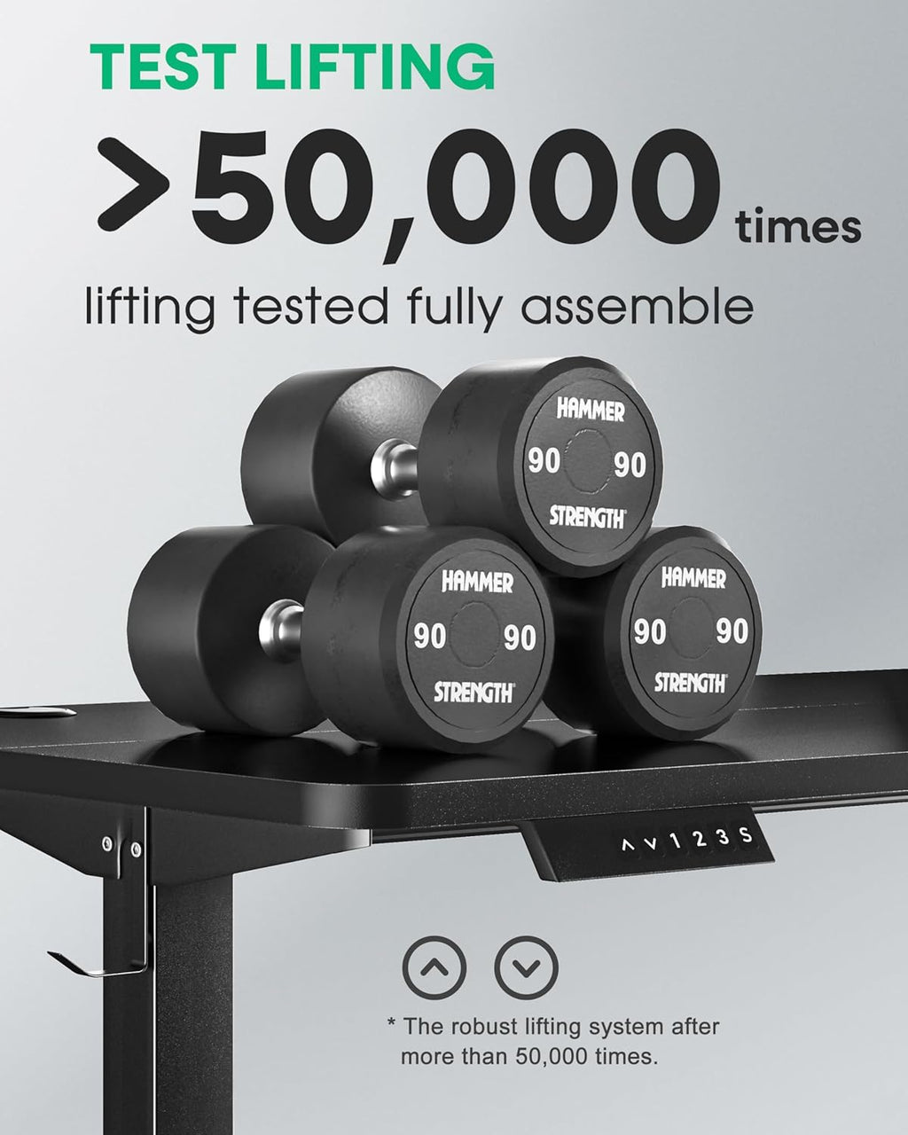 • Enhanced Dual-Motor: This adjustable desk built with 2 advanced motors, is heavy duty, tested over 10 inspection processes before assembly. This stand up desk smoothly lift and lower more than 50,000 times and support up to 265 lbs