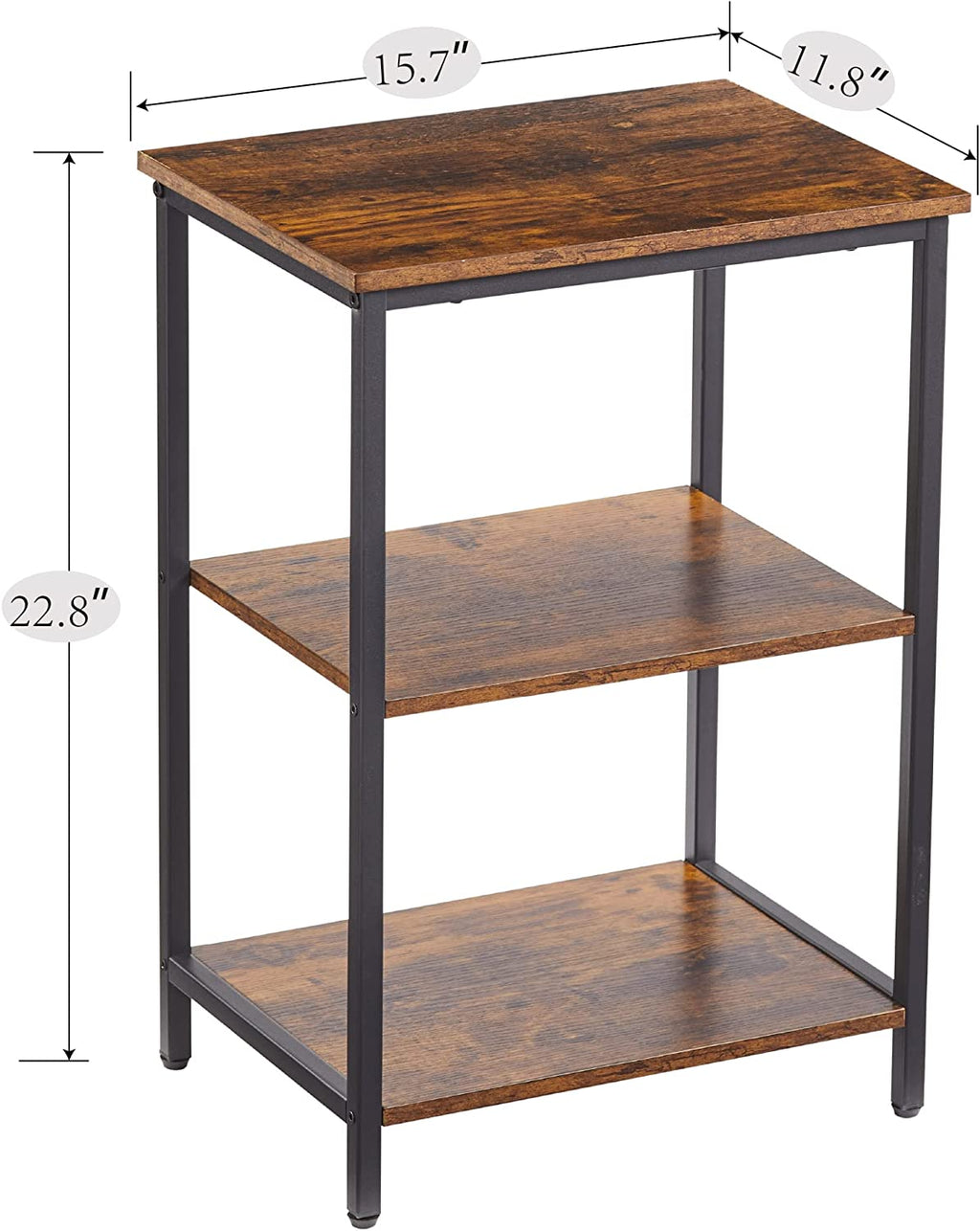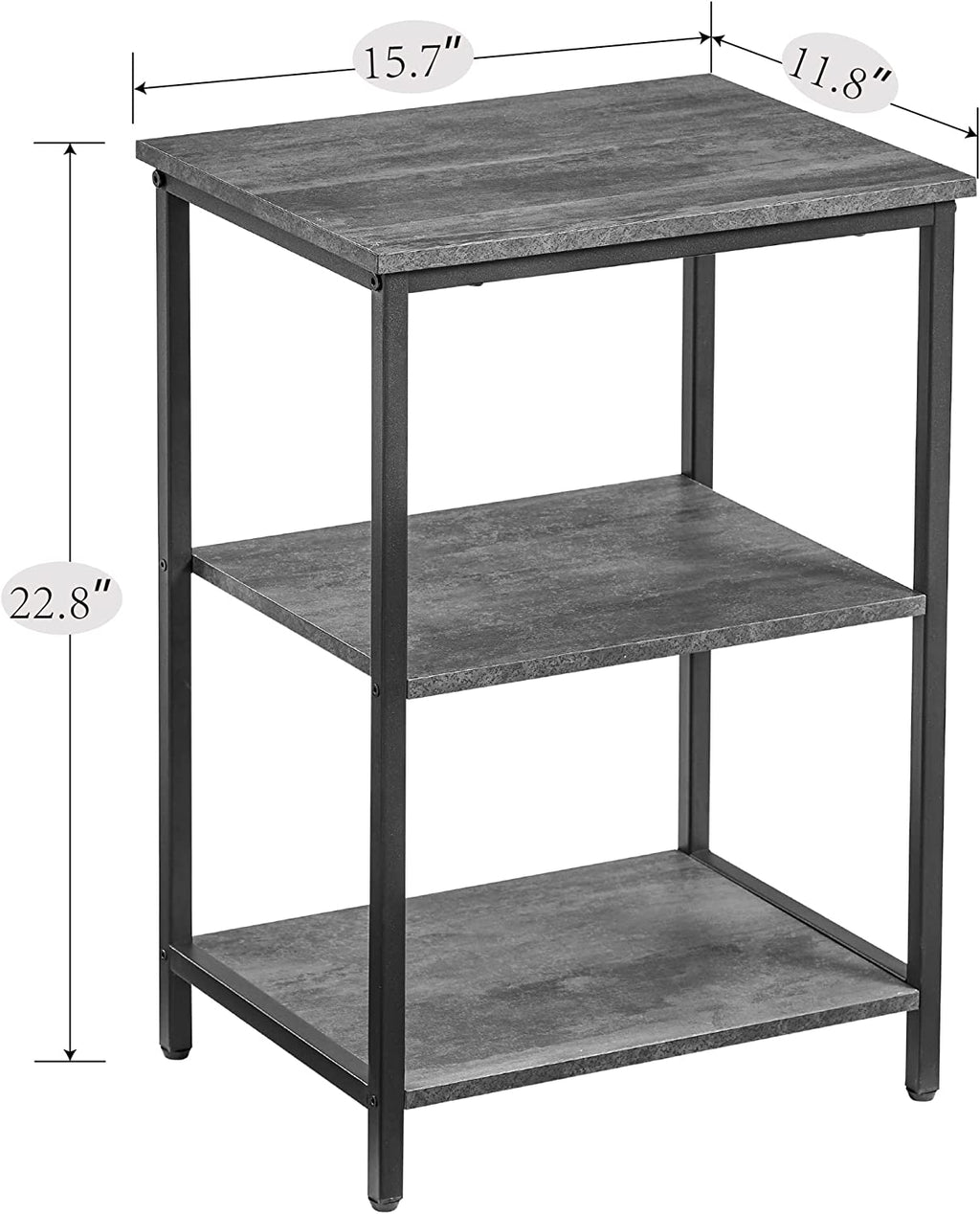 • 【Large Storage Space】Standing at 15.7L x 11.8W x 22.8H, the end table takes up a little space, while with the 3-tier shelves, provides sufficient storage. Whether water glasses, books, snacks or other sundries in the end table, you can access them easily.